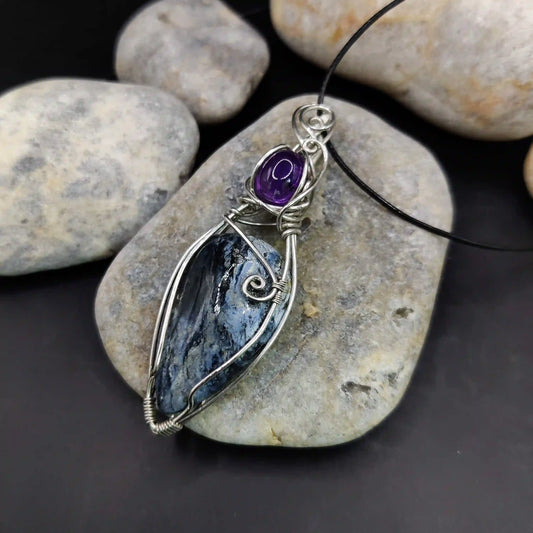 Advithi - Dumortierite and Amethyst Silver Necklace