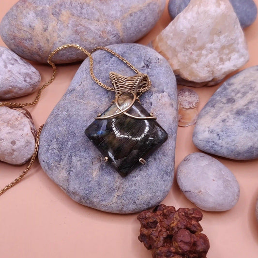This iridescent stone is associated with intuition, spiritual growth, and emotional healing. It can help with self-awareness, creativity, and communication.