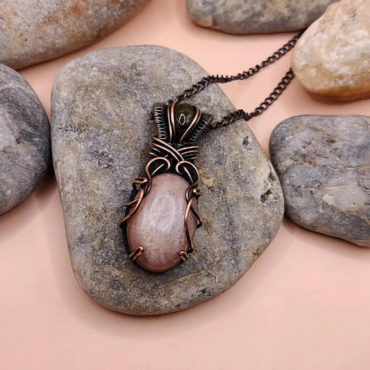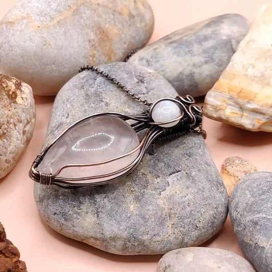 Advithi- Rose Quartz and Rainbow Moonstone Necklace