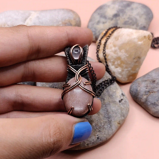 Daiva- Peach Moonstone And Rose Quartz Necklace - 002