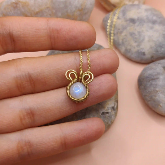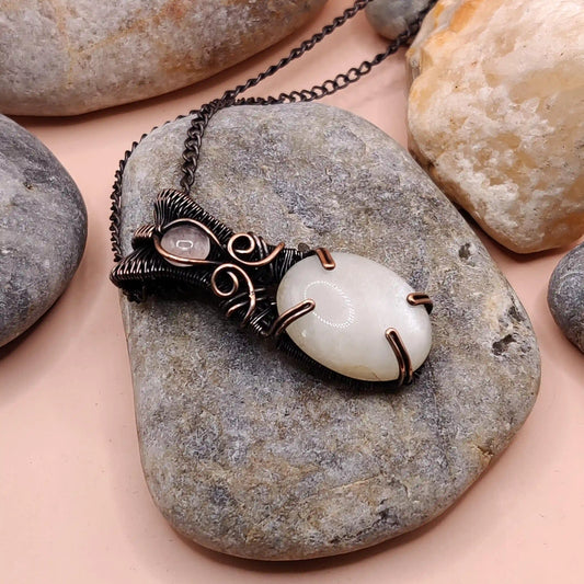 Advithi - White Moonstone and Rainbow Moonstone Necklace