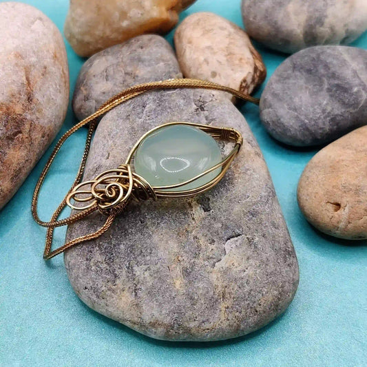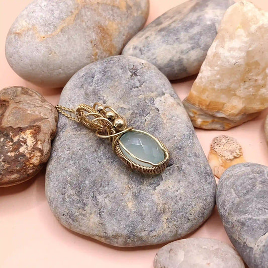 Chaitya - Aqua Chalcedony Necklace in Brass