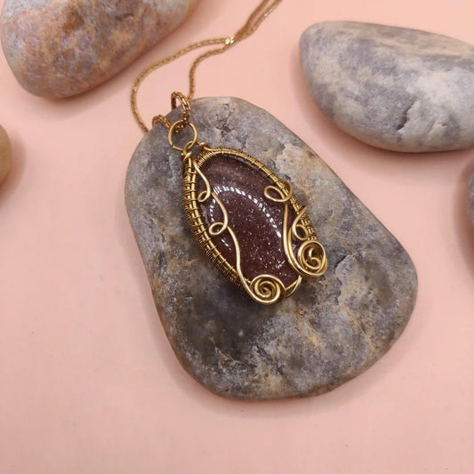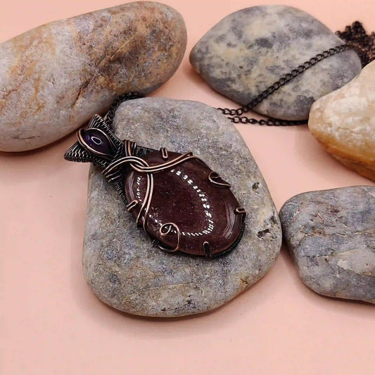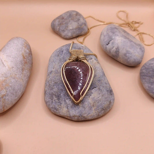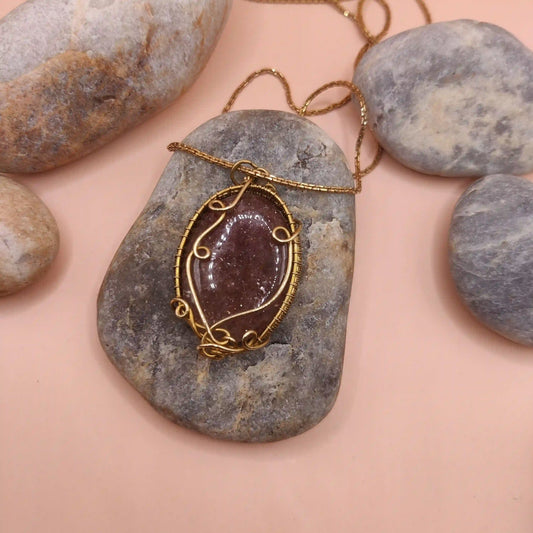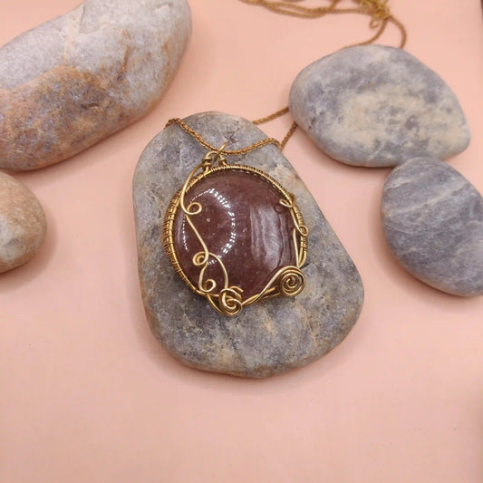 Manovriti - Strawberry Quartz Necklace In Brass 003