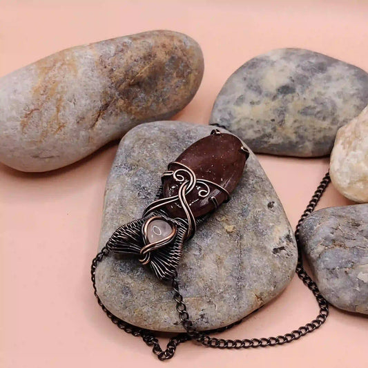 Manovriti - Strawberry Quartz Necklace In Brass 002