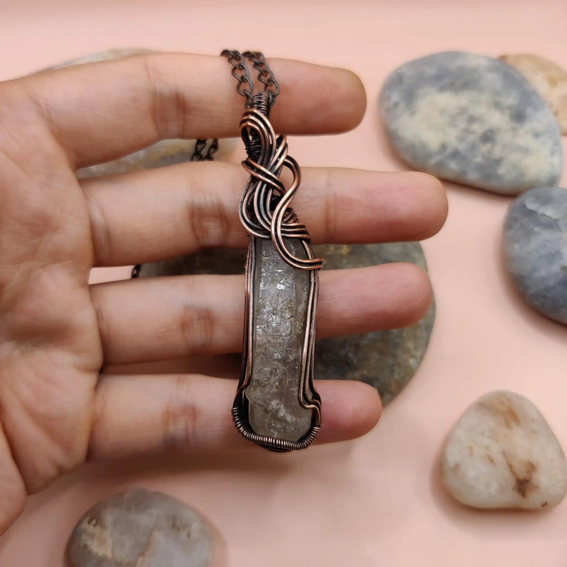• Handmade with a natural raw clear quartz pendant and pure copper chain