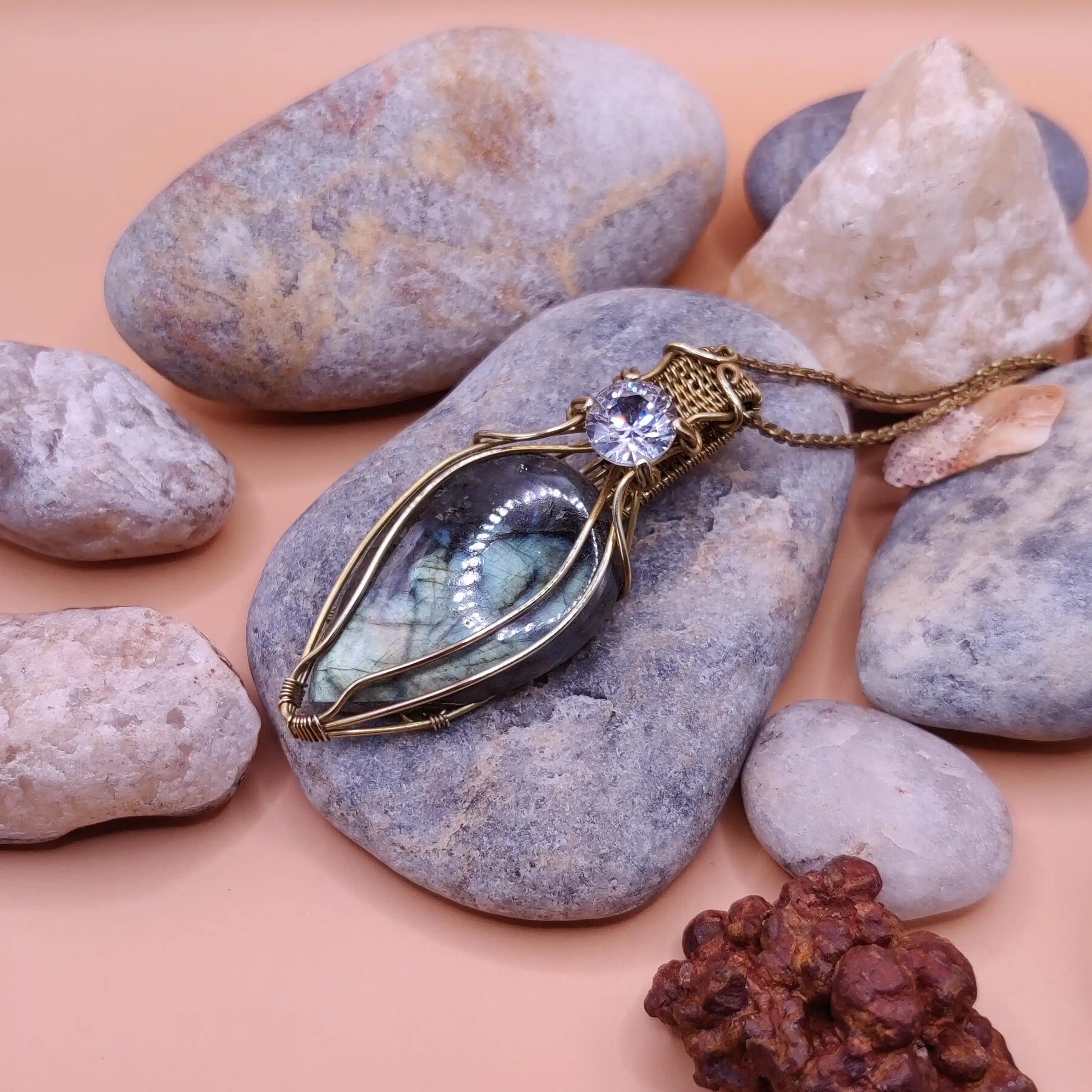 Embrace the harmonious energies of labradorite, cubic zirconia, and brass with this exquisite necklace, and let it guide you towards a more intuitive, radiant, and transformative life.