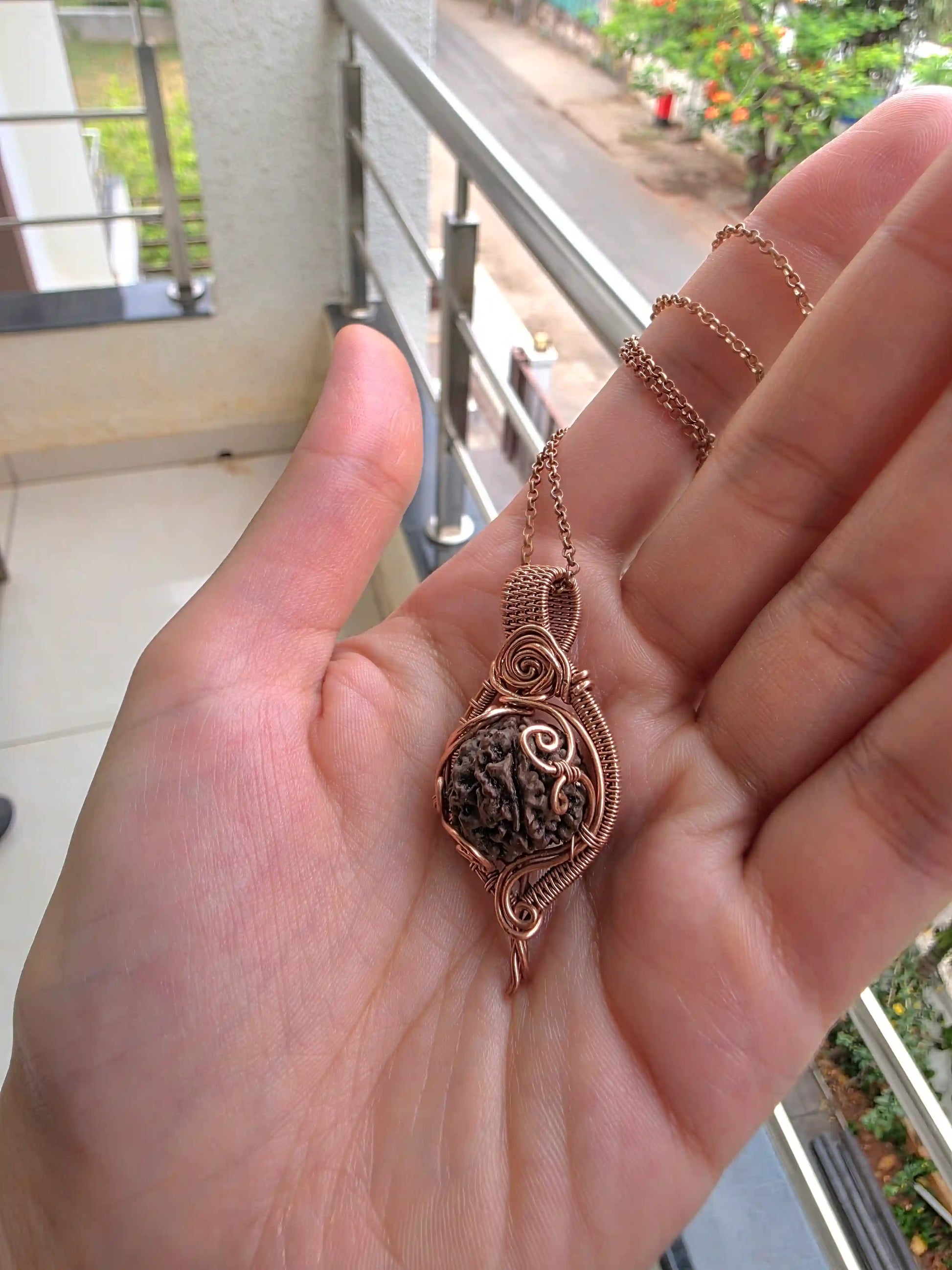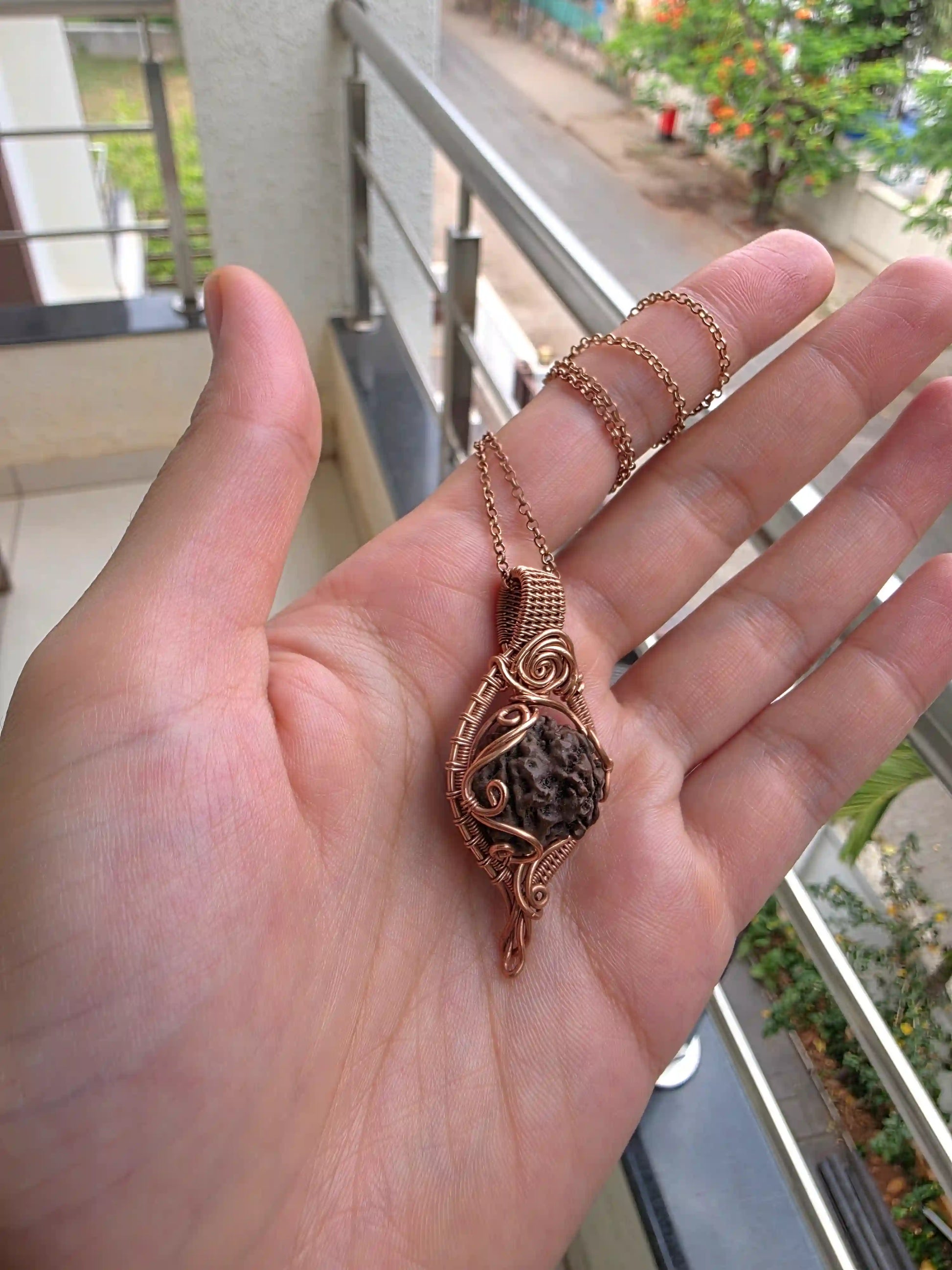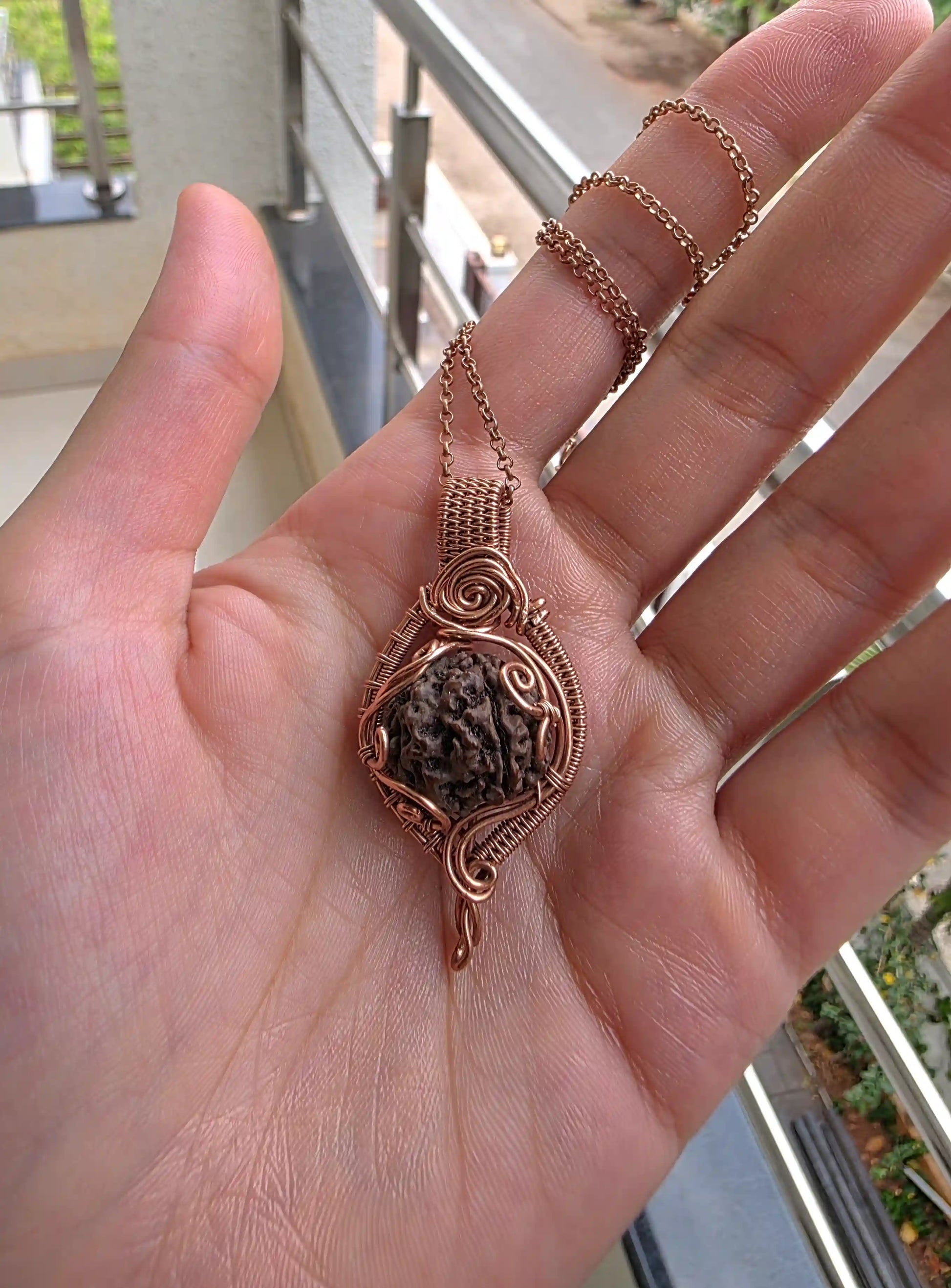 Designed for those who seek divine guidance, balance, and inner strength, this Panchamukhi Rudraksha copper necklace serves as a powerful talisman. Whether worn as a sacred spiritual piece or a unique artisanal accessory, it radiates protection, wisdom, and tranquility.