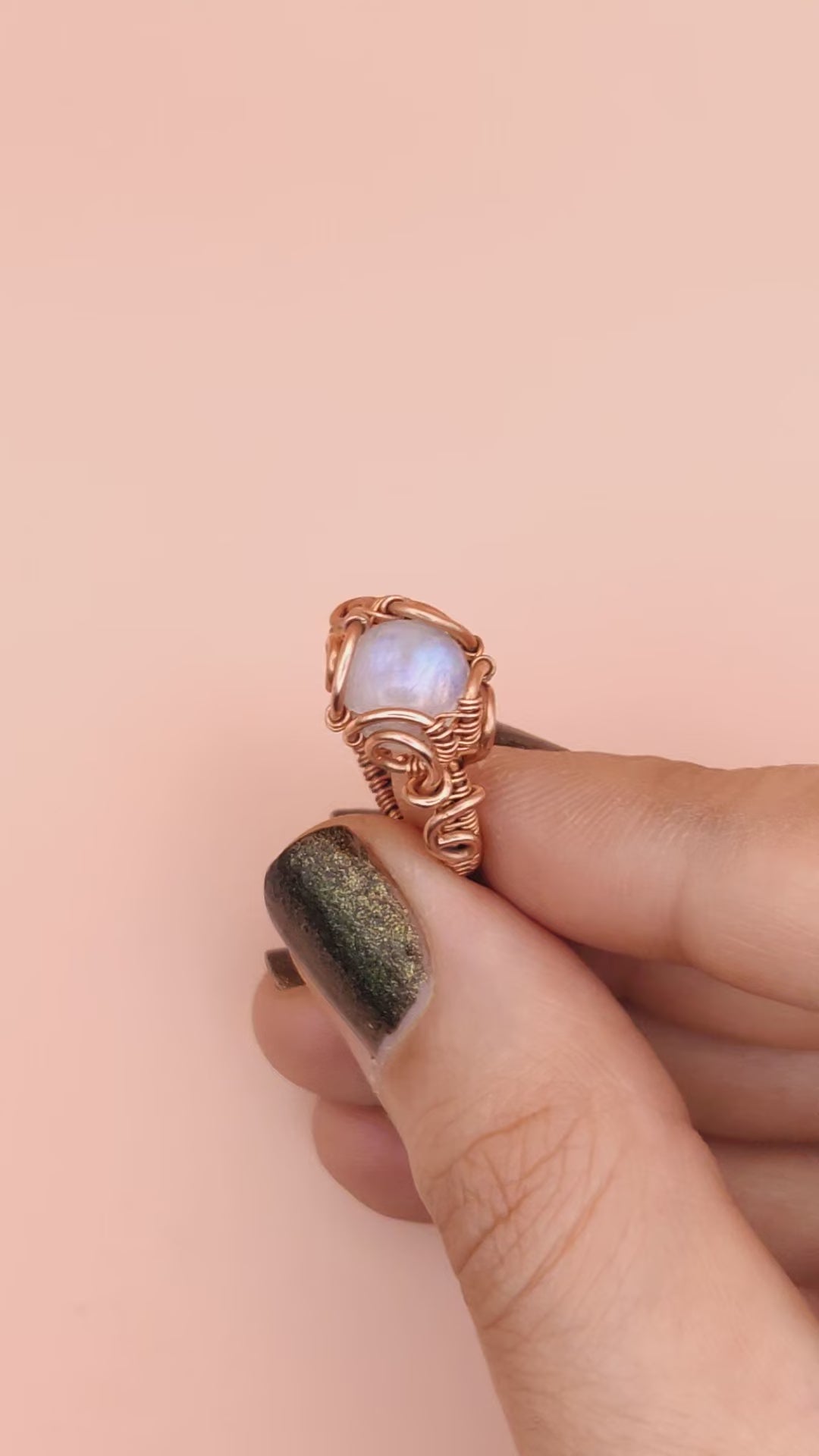 • Handmade with a natural rainbow moonstone and copper band