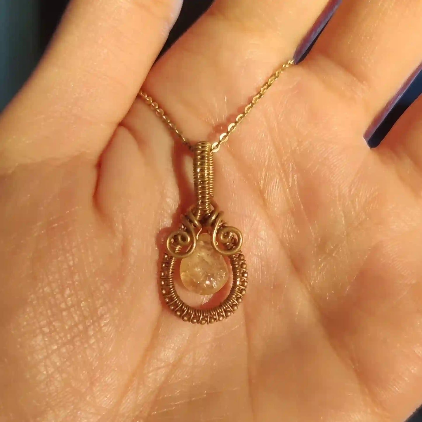 • Handmade with a natural citrine pendant and pure brass chain