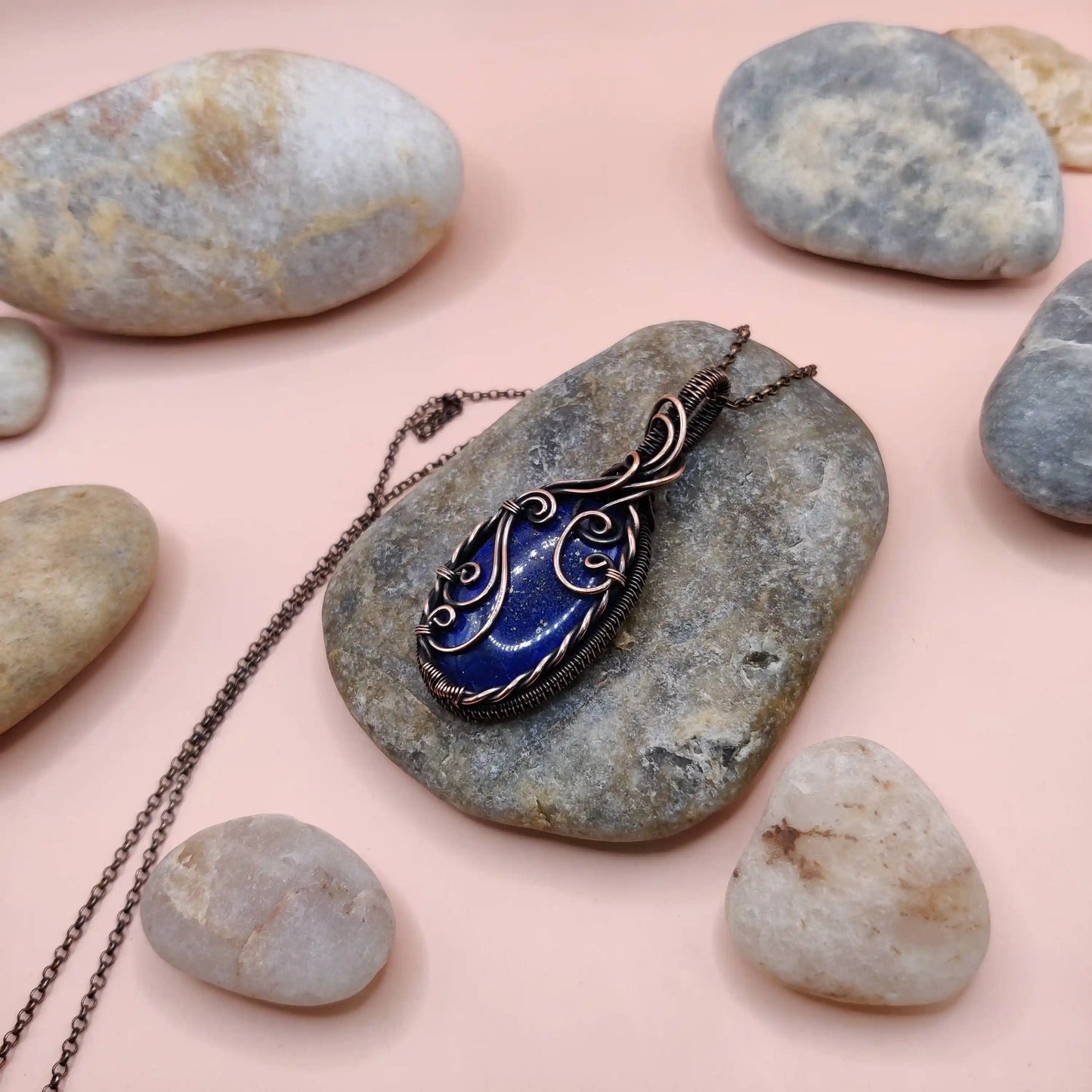 • Handcrafted with a natural lapis lazuli pendant and pure copper chain
