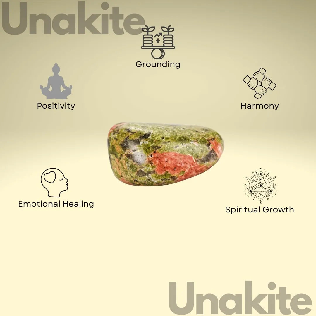 • Emotional Balance and Peace: Unakite's calming vibrations are said to soothe emotional turbulence and promote a sense of inner peace and harmony.