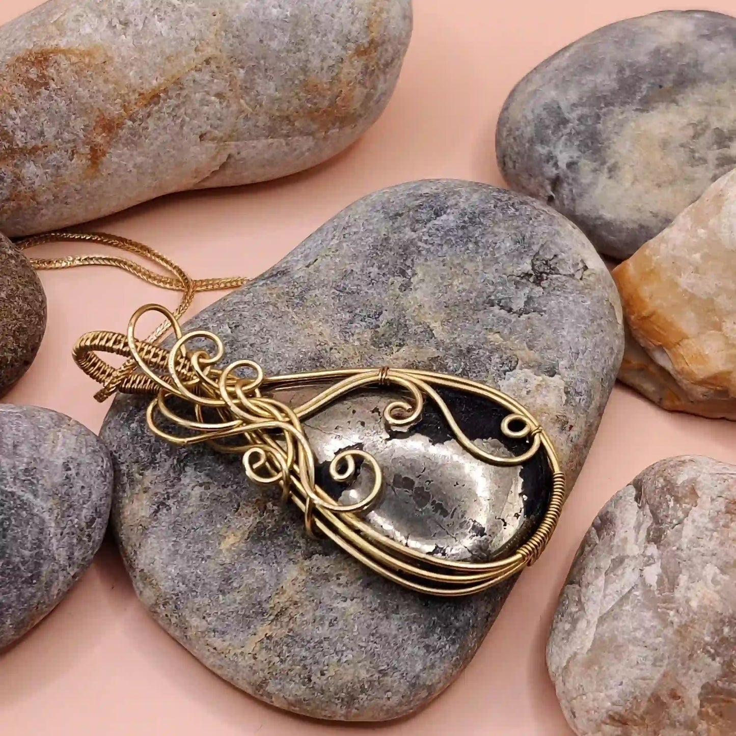 Embrace the harmonious energies of pyrite and brass with this exquisite necklace, and let it guide you towards a more prosperous, protected, and confident life.