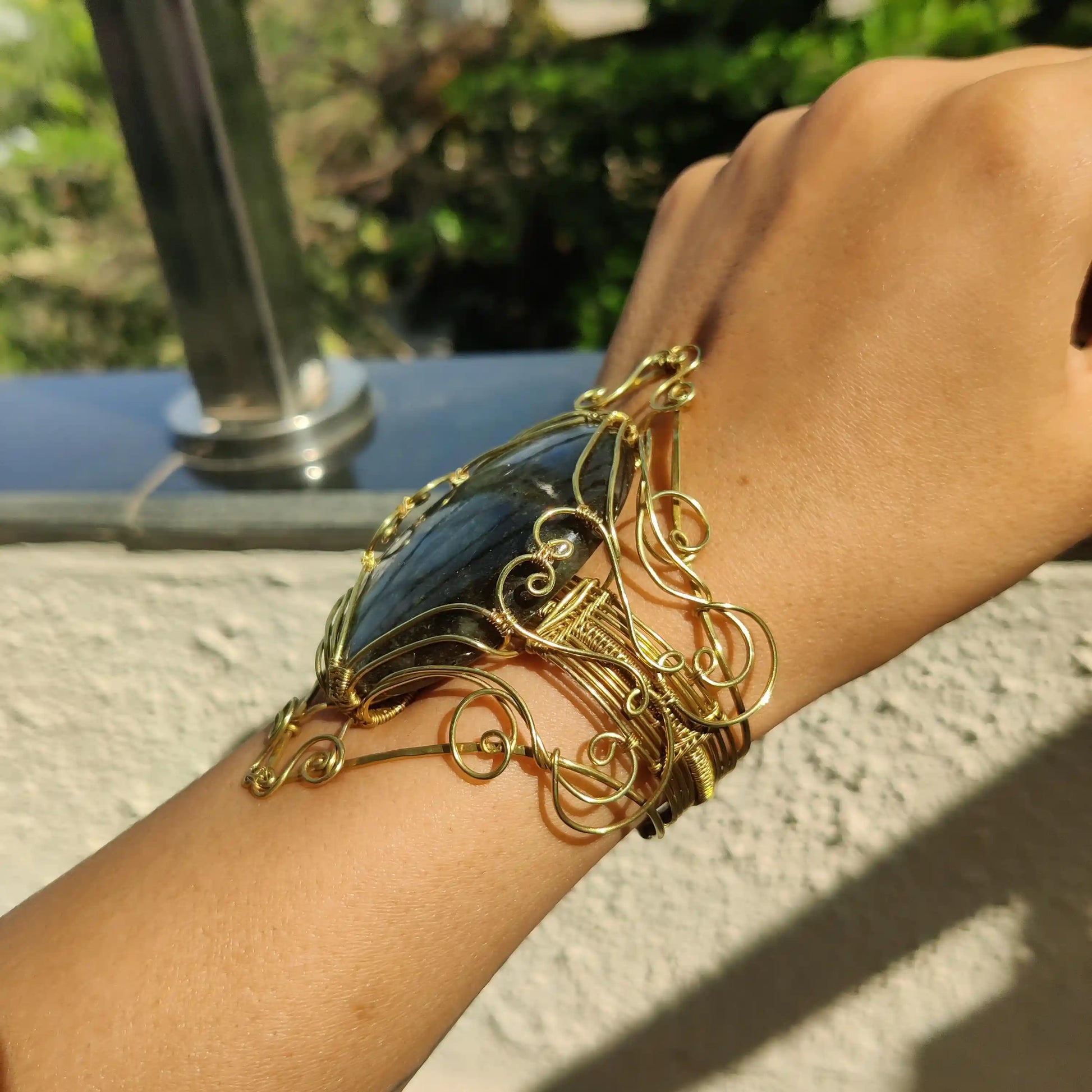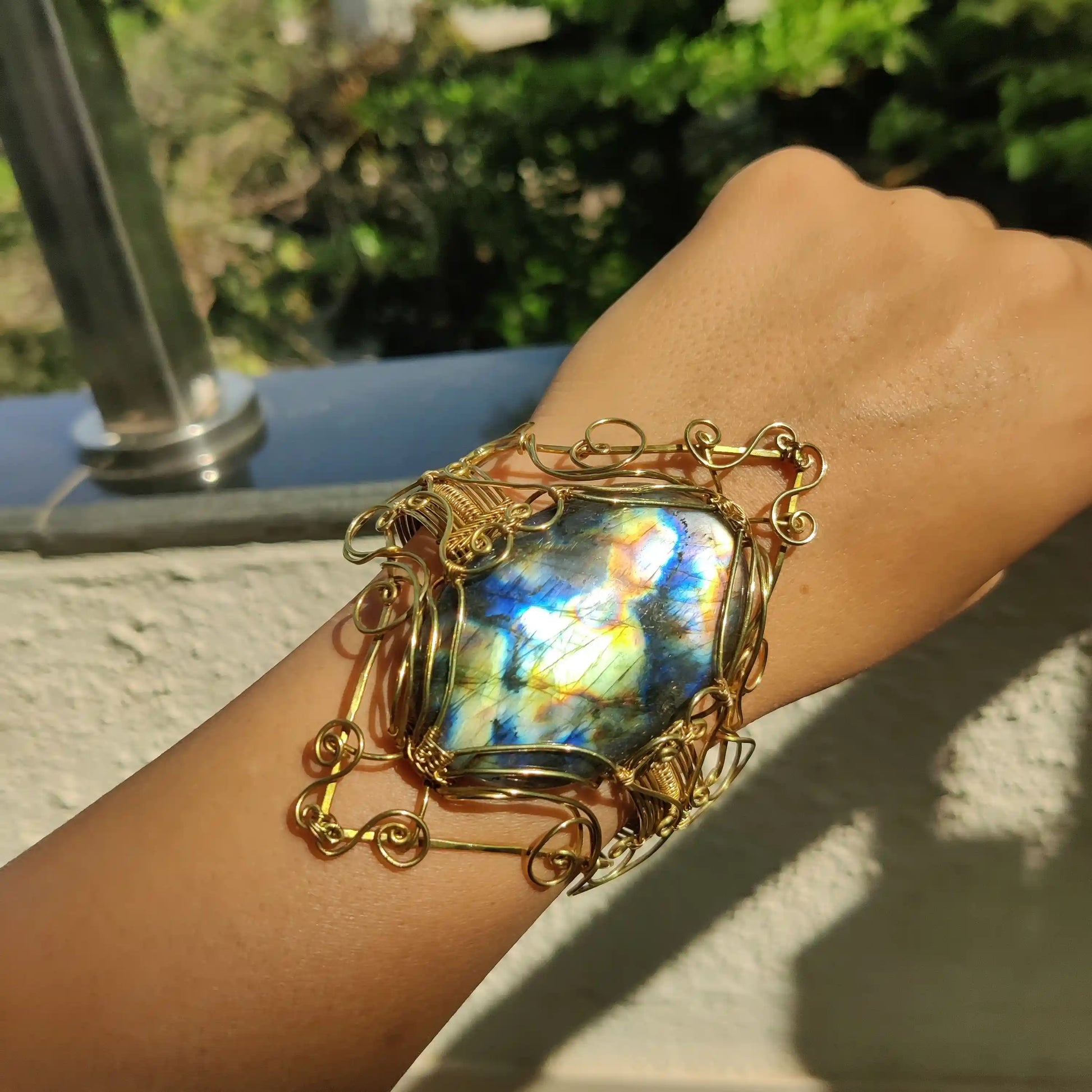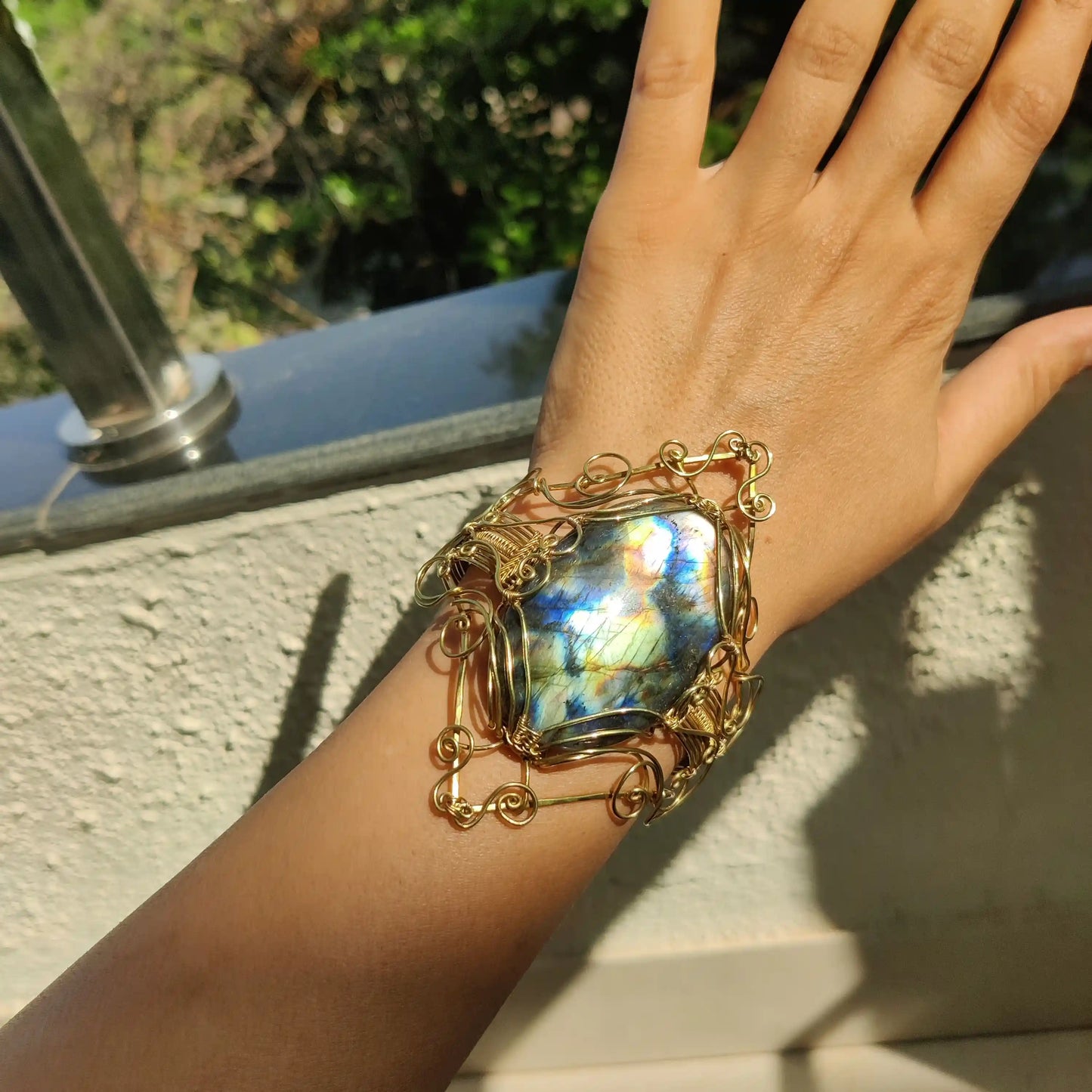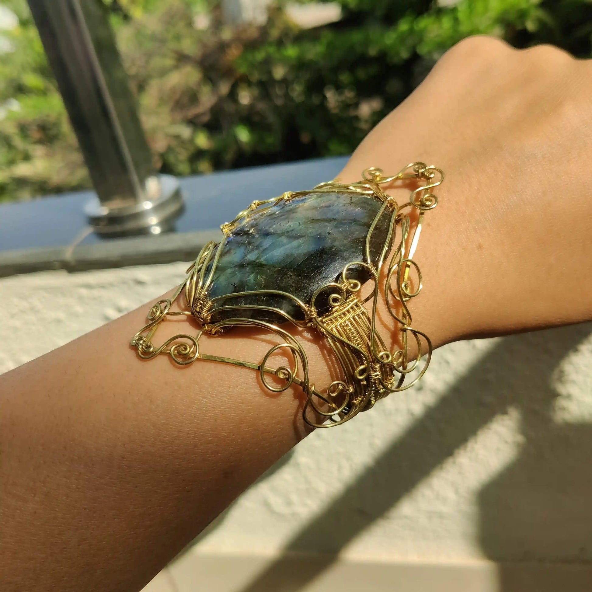 Let the mystical energy of labradorite and the grounding strength of brass guide you on a journey of intuition, transformation, and empowerment. This extraordinary cuff bracelet is more than just an accessory—it is a talisman of strength and timeless beauty.