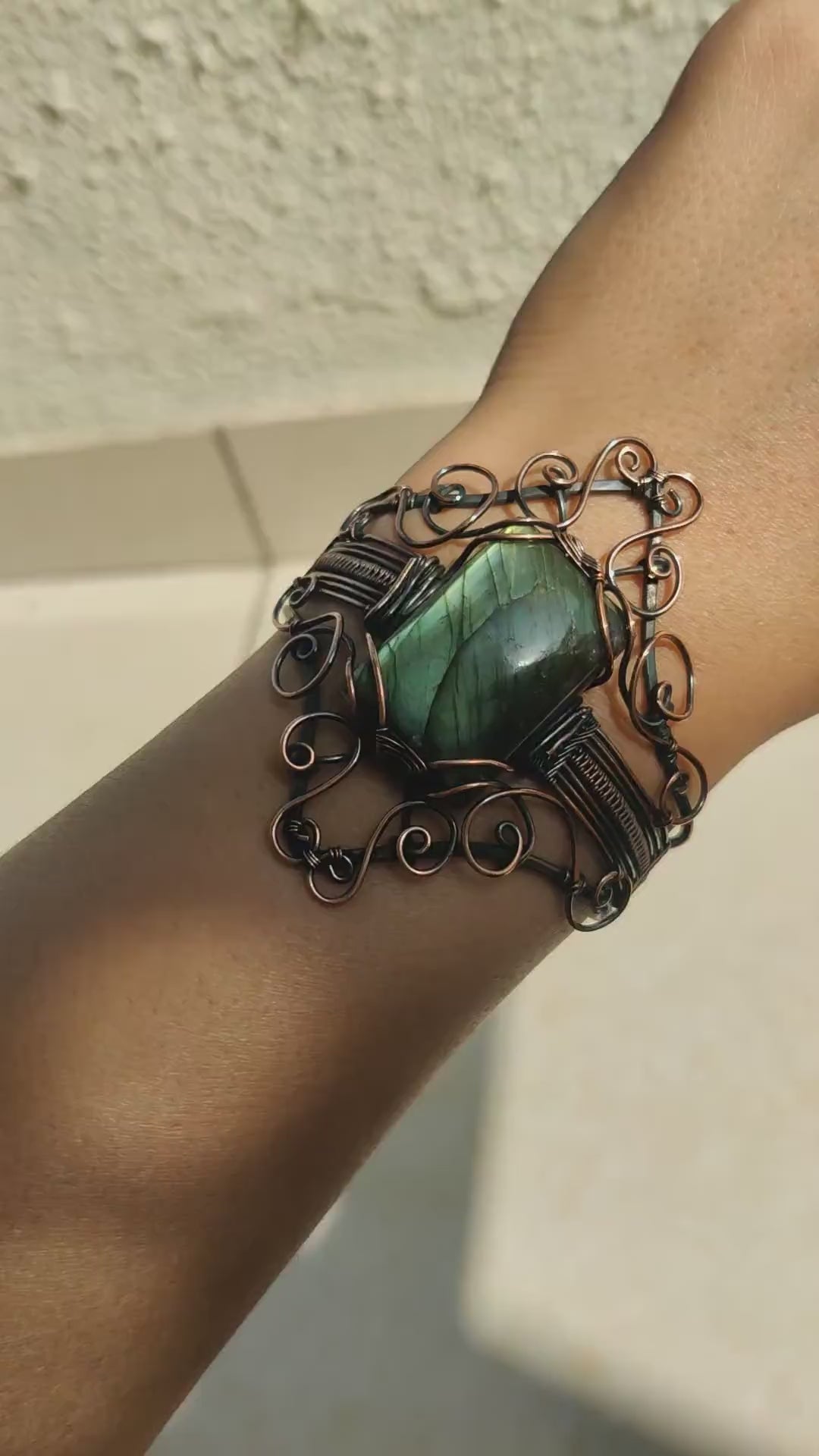 Let the mystical energy of labradorite and the grounding power of copper guide you on a journey of self-discovery, intuition, and empowerment. This extraordinary cuff bracelet is more than just an accessory—it is a talisman of strength and transformation.
