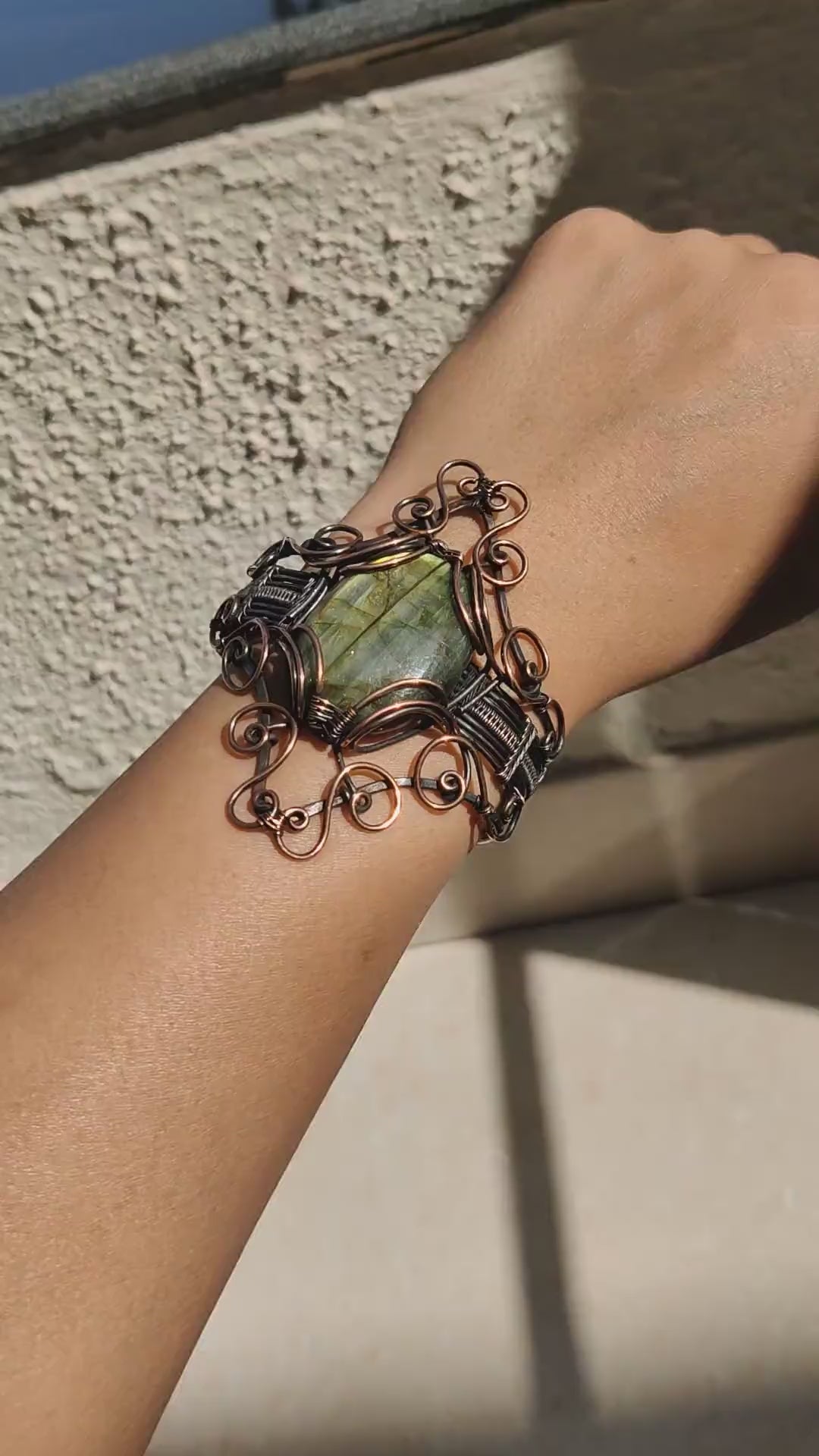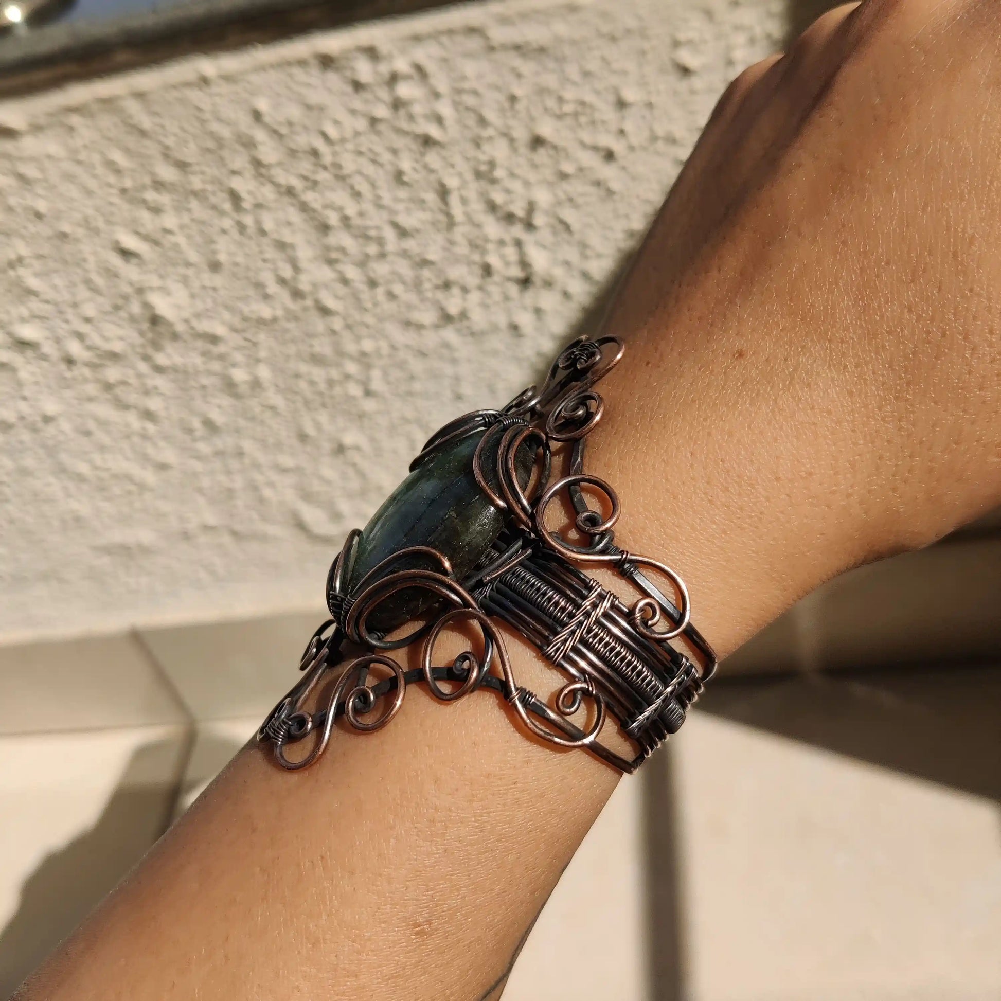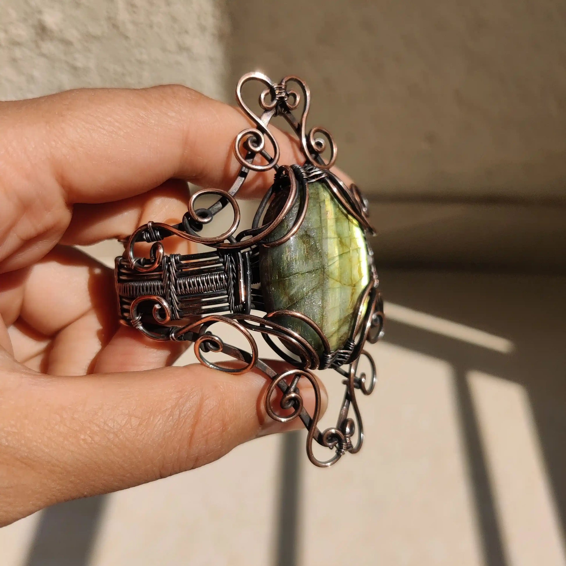 Let the mystical energy of labradorite and the grounding power of copper guide you on a journey of self-discovery, intuition, and empowerment. This extraordinary cuff bracelet is more than just an accessory—it is a talisman of strength and transformation.
