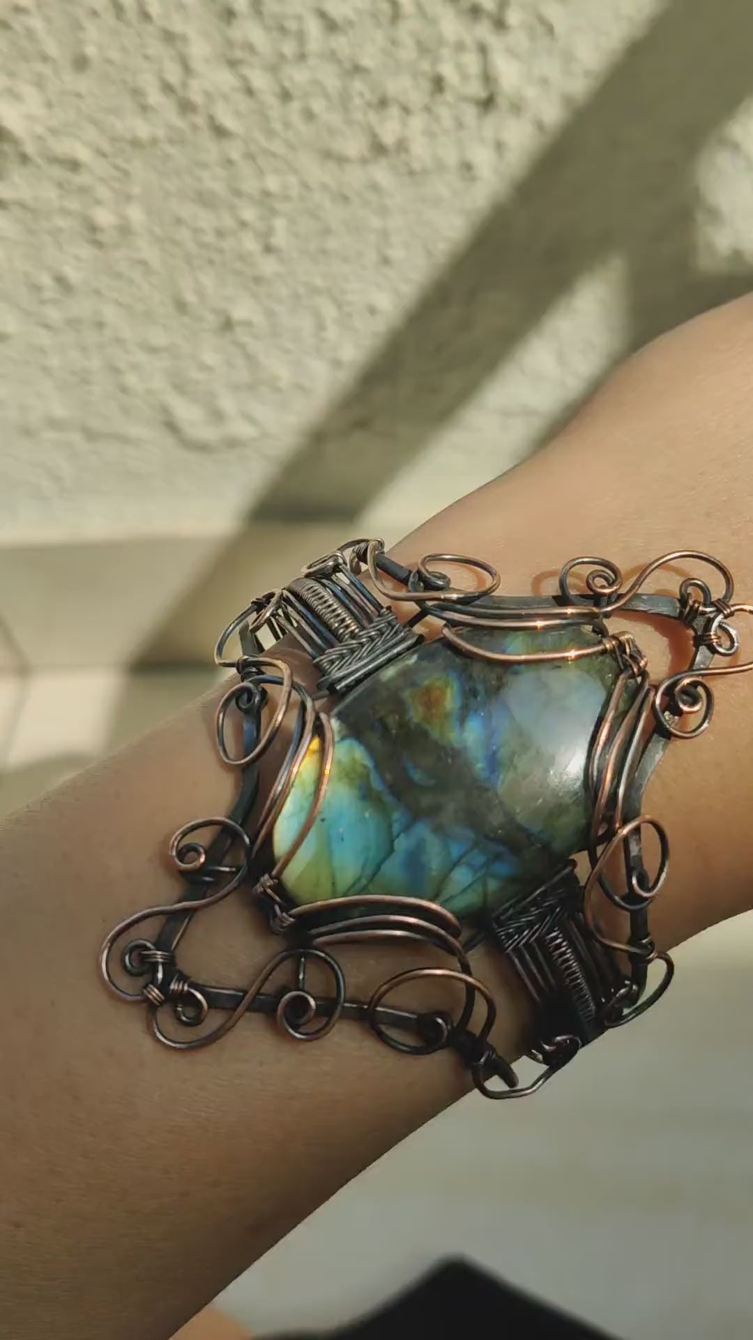 Let the mystical energy of labradorite and the grounding power of copper guide you on a journey of self-discovery, intuition, and empowerment. This extraordinary cuff bracelet is more than just an accessory—it is a talisman of strength and transformation.