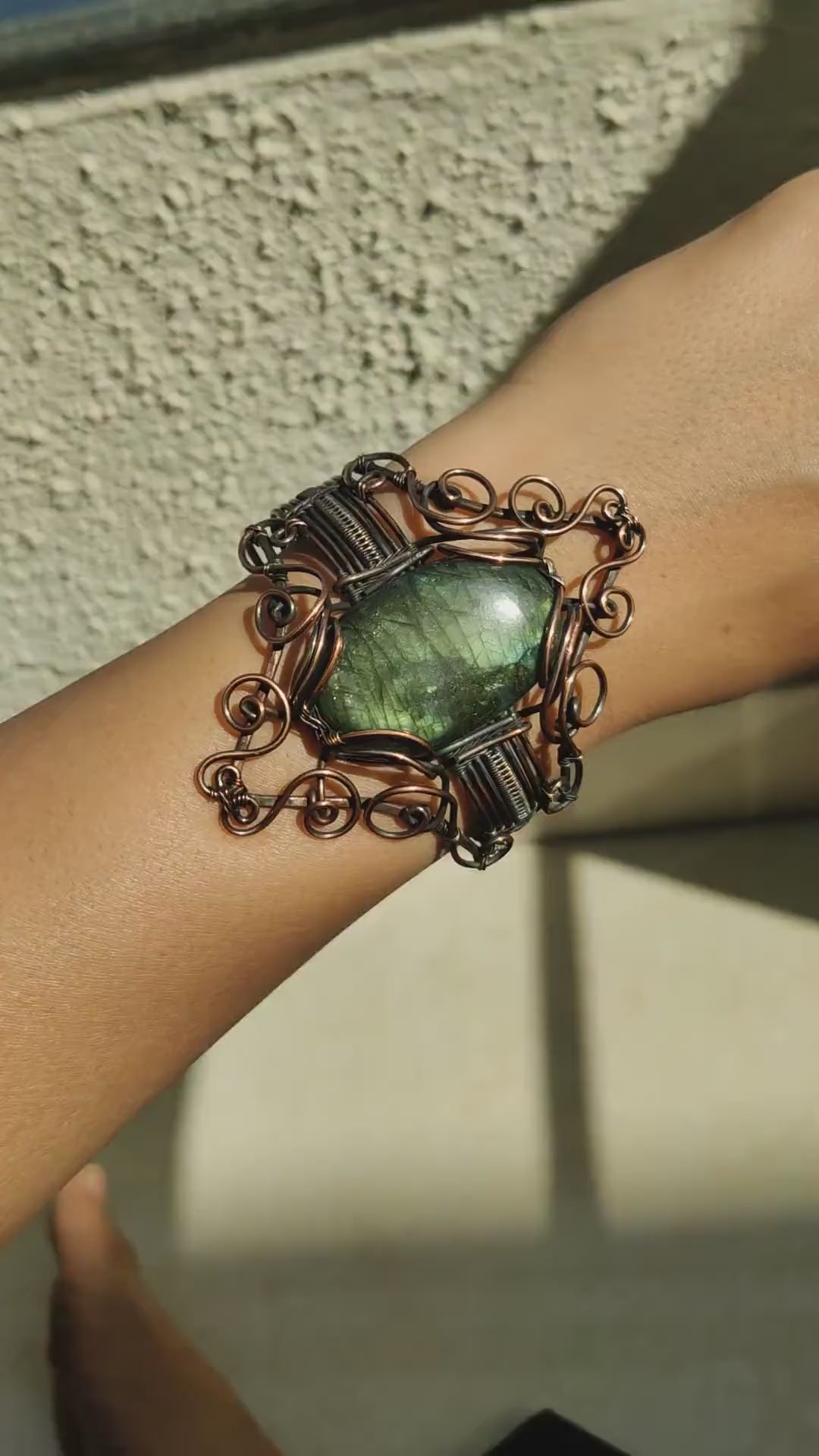 Let the mystical energy of labradorite and the grounding power of copper guide you on a journey of self-discovery, intuition, and empowerment. This extraordinary cuff bracelet is more than just an accessory—it is a talisman of strength and transformation.
