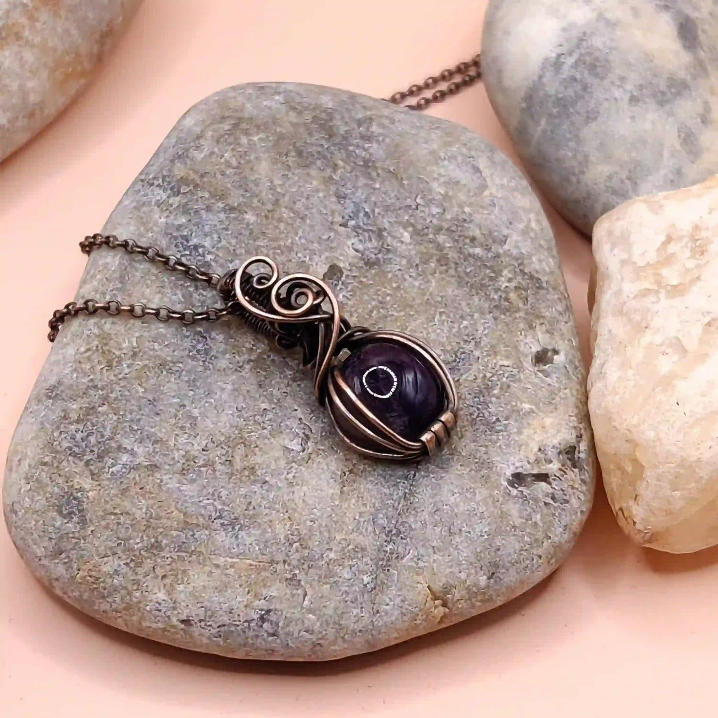 Embrace the harmonious energies of amethyst and copper with this exquisite necklace, and let it guide you towards a more balanced, peaceful, and spiritually aware life.