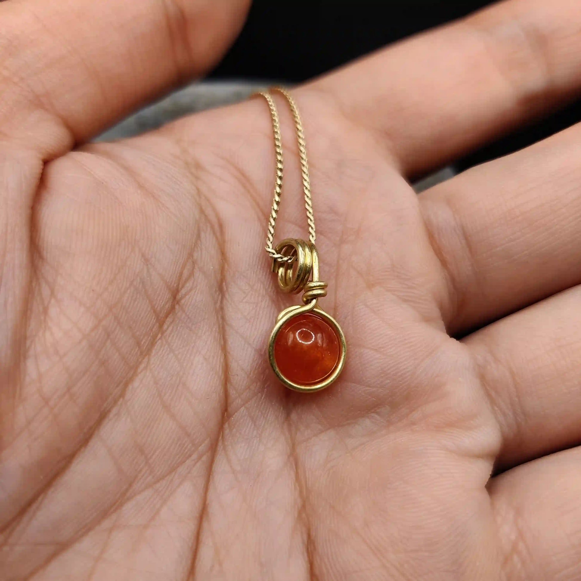 • Handmade with a natural carnelian agate pendant and pure brass chain