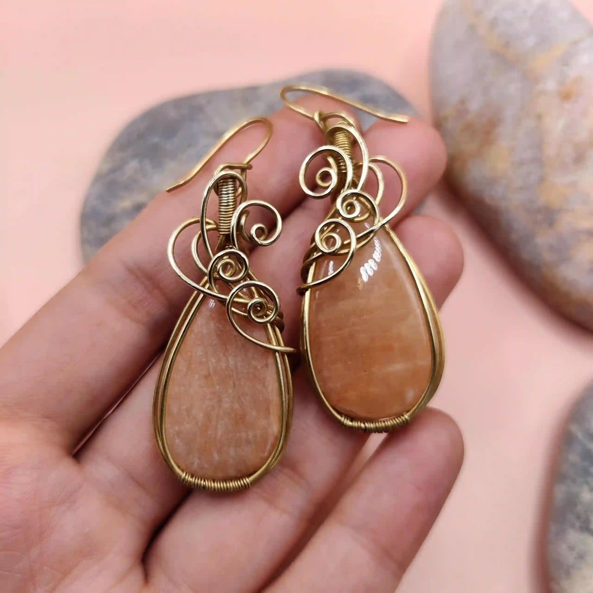 This unique pair of earrings brings a beautiful, natural element to your everyday outfit. Made with pink amazonite and brass, these earrings will help you connect to universal energies, creating a sense of inner peace and balance. Each beautiful handmade piece is intricately woven into stunning designs that are simple yet elegant.