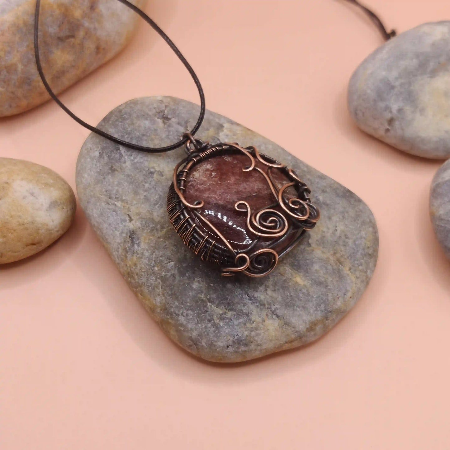• Handmade with natural strawberry quartz and copper wire wrapping