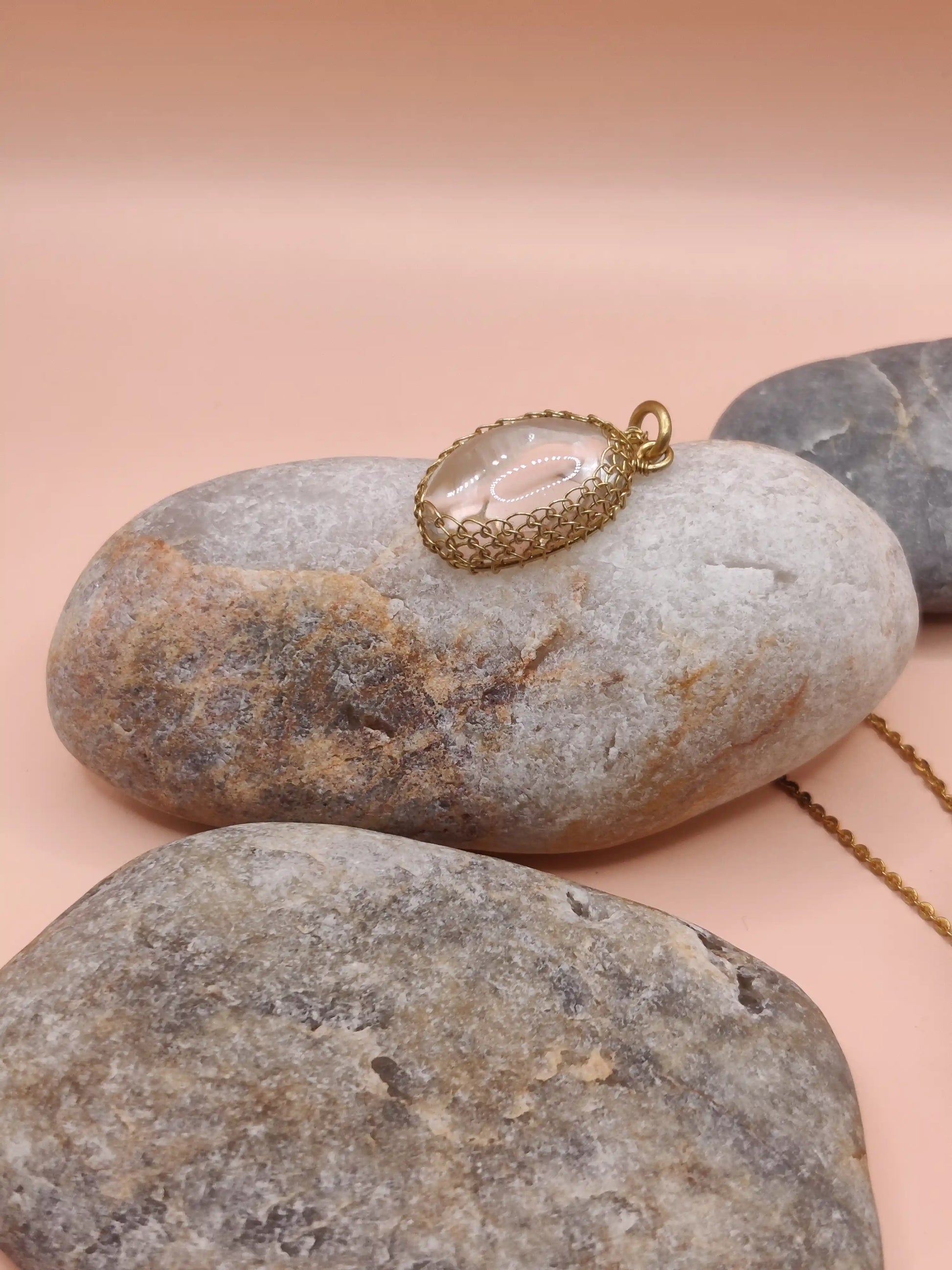 Crafted with reverence for clarity and light, this necklace features a high-quality natural Clear Quartz crystal set in intricately woven brass. The pendant is paired with a matching brass chain, creating a luminous harmony between stone and metal. The refined wirework embraces the transparent quartz, letting its purity shine through while grounding its energy in warm, golden brass. This is a timeless piece created for seekers, empaths, and lightworkers who desire a deeper connection to their inner truth and higher self.