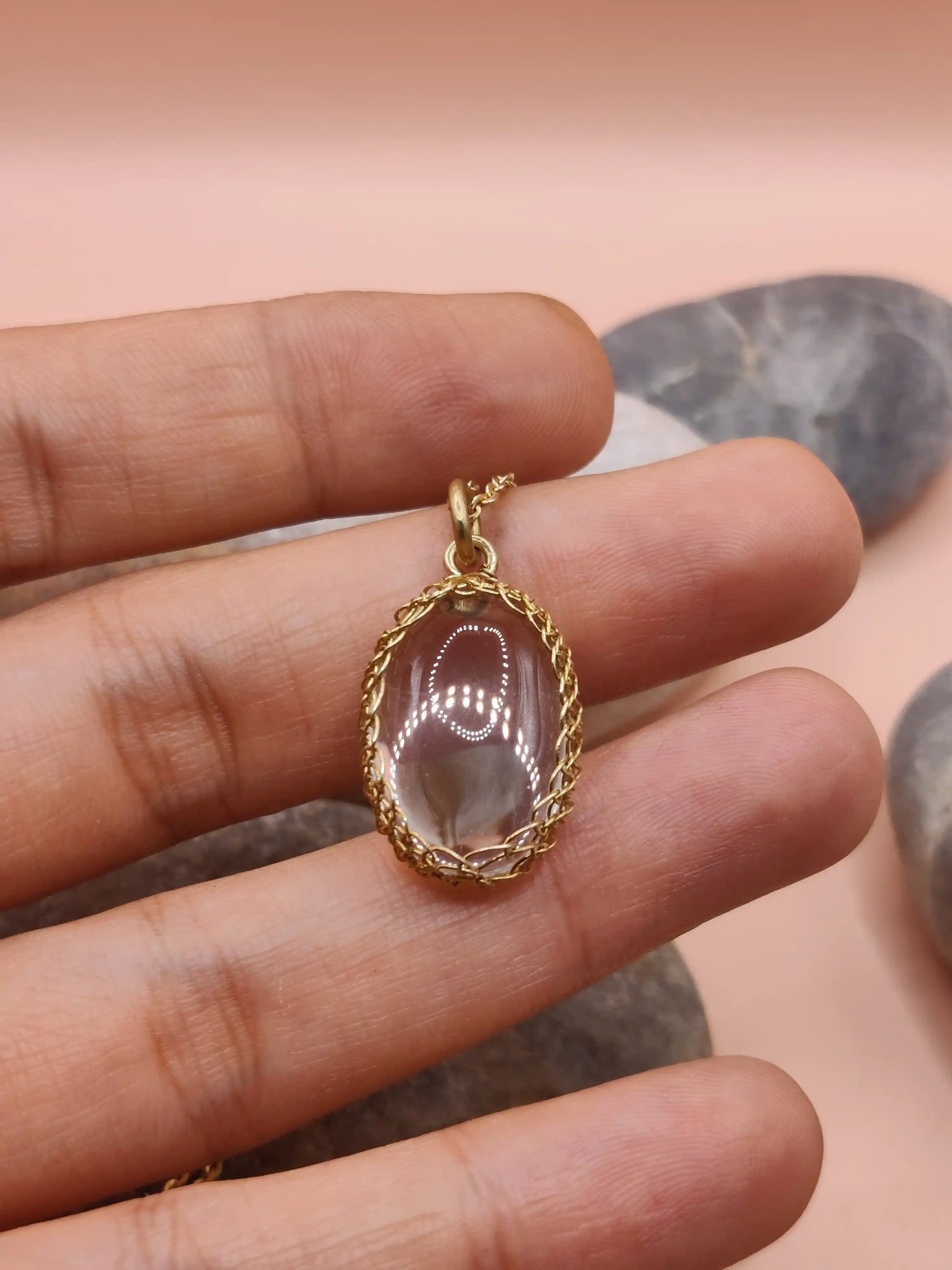 Before wearing for the first time, hold the necklace in your palms, close your eyes, and speak your intention aloud. Allow the Clear Quartz to align with your frequency. Cleanse periodically using sound, sunlight, or by placing it on a selenite plate. Recharge through meditation or breathwork while holding the pendant close to your heart or third eye.