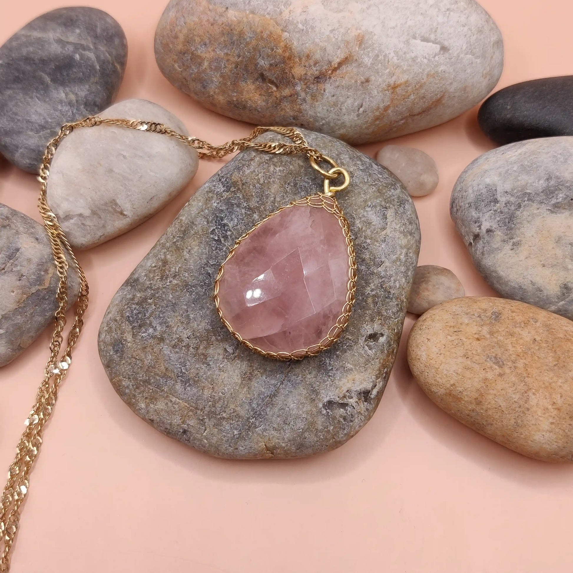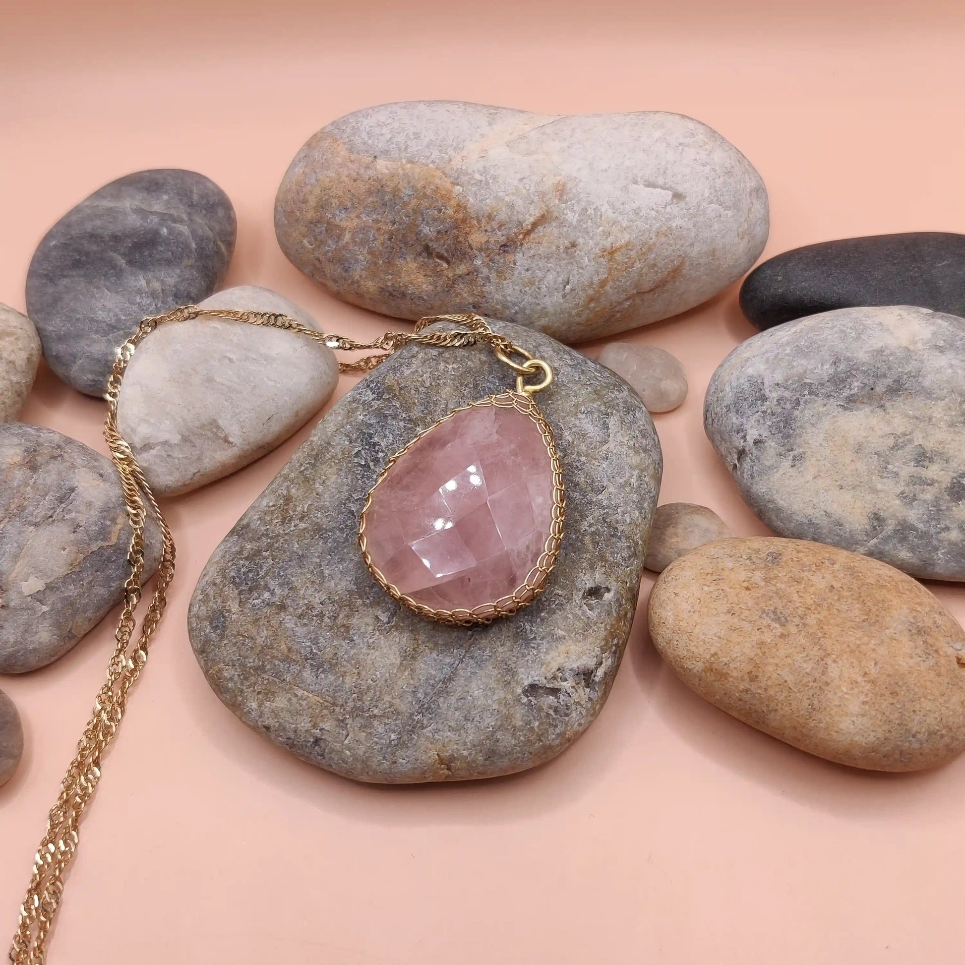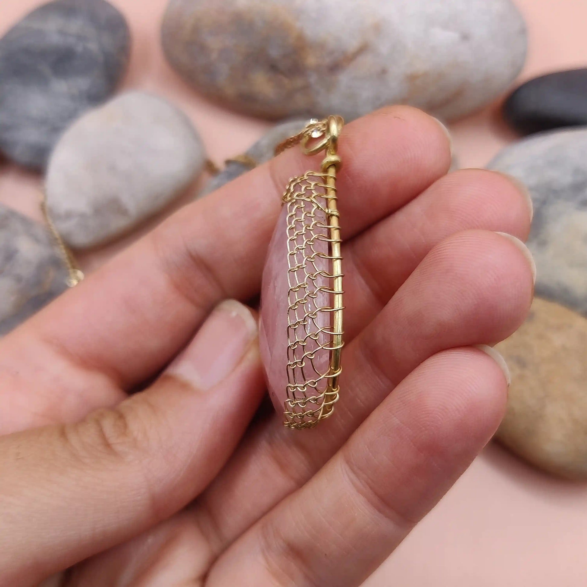 Embrace the harmonious energies of rose quartz and brass with this exquisite necklace, and let it guide you towards a more loving, peaceful, and balanced life.