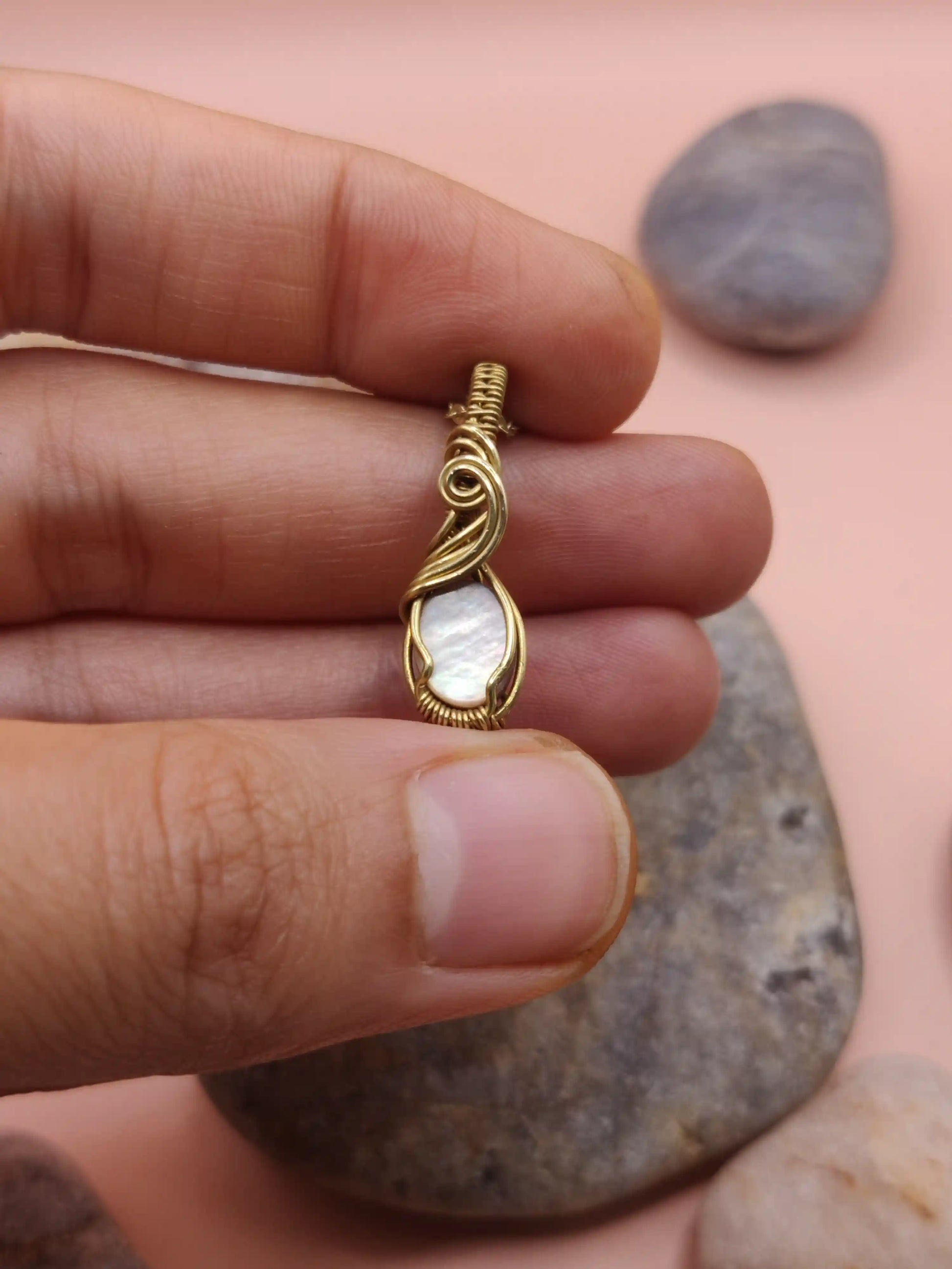 Its golden tone complements the soft iridescence of Mother of Pearl, making the overall piece both subtle and soulful.