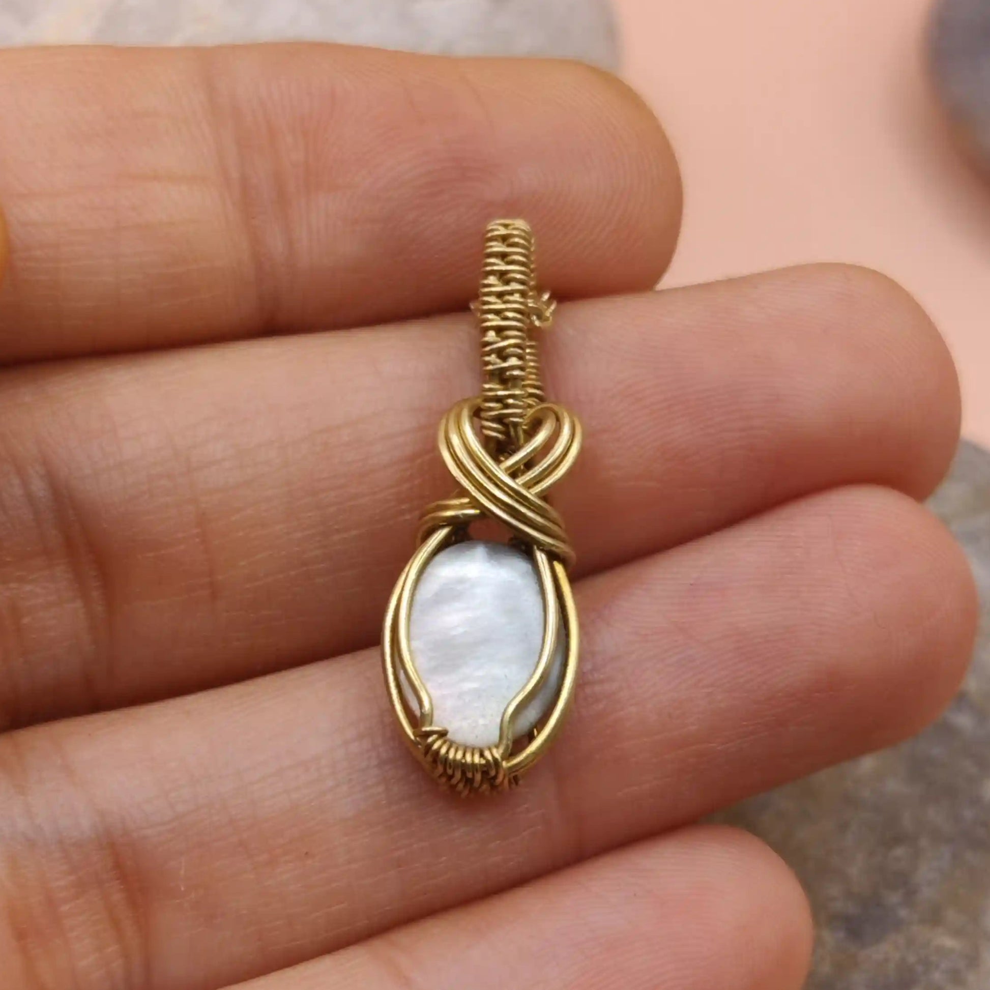 Its golden tone complements the soft iridescence of Mother of Pearl, making the overall piece both subtle and soulful.