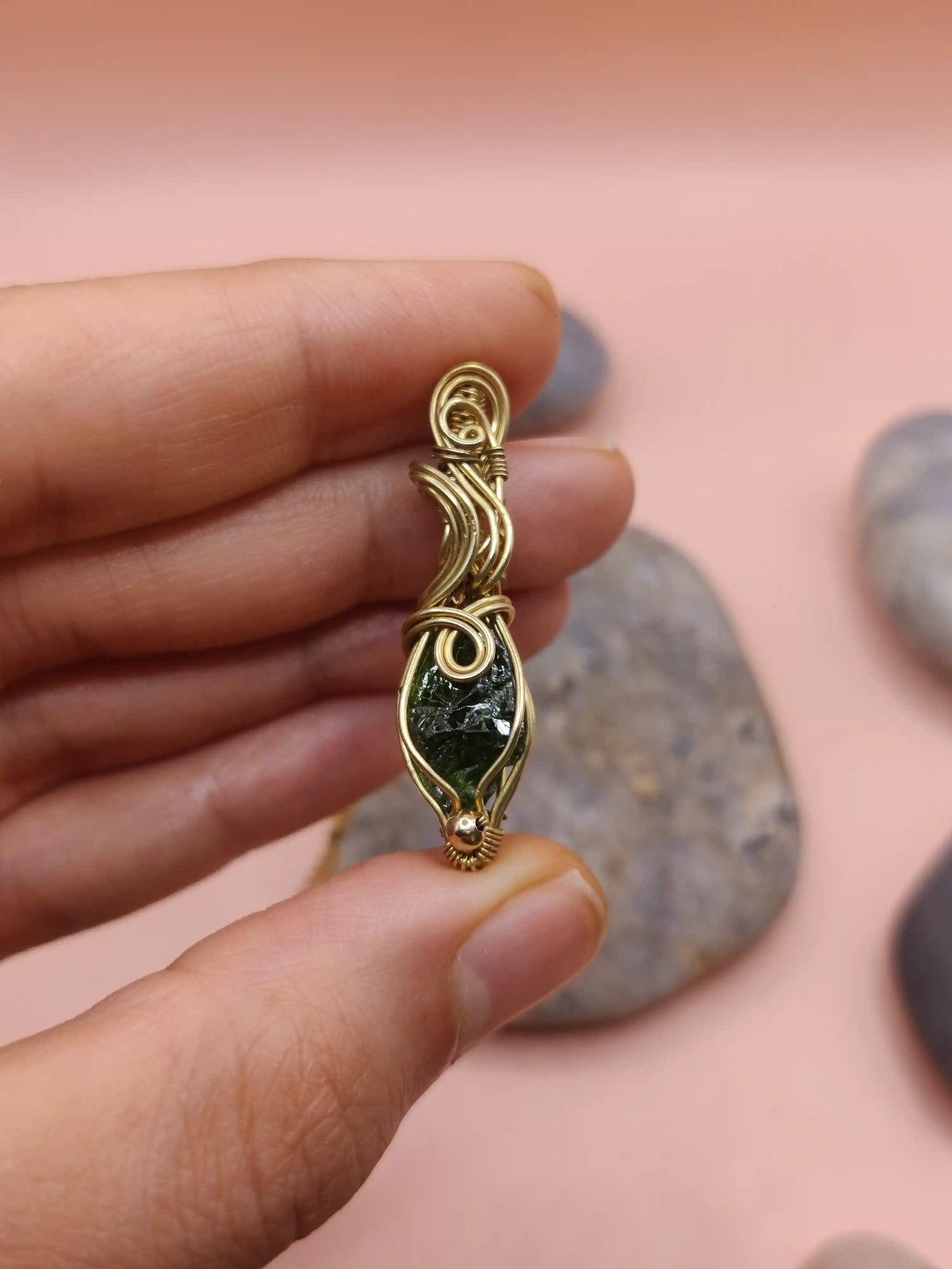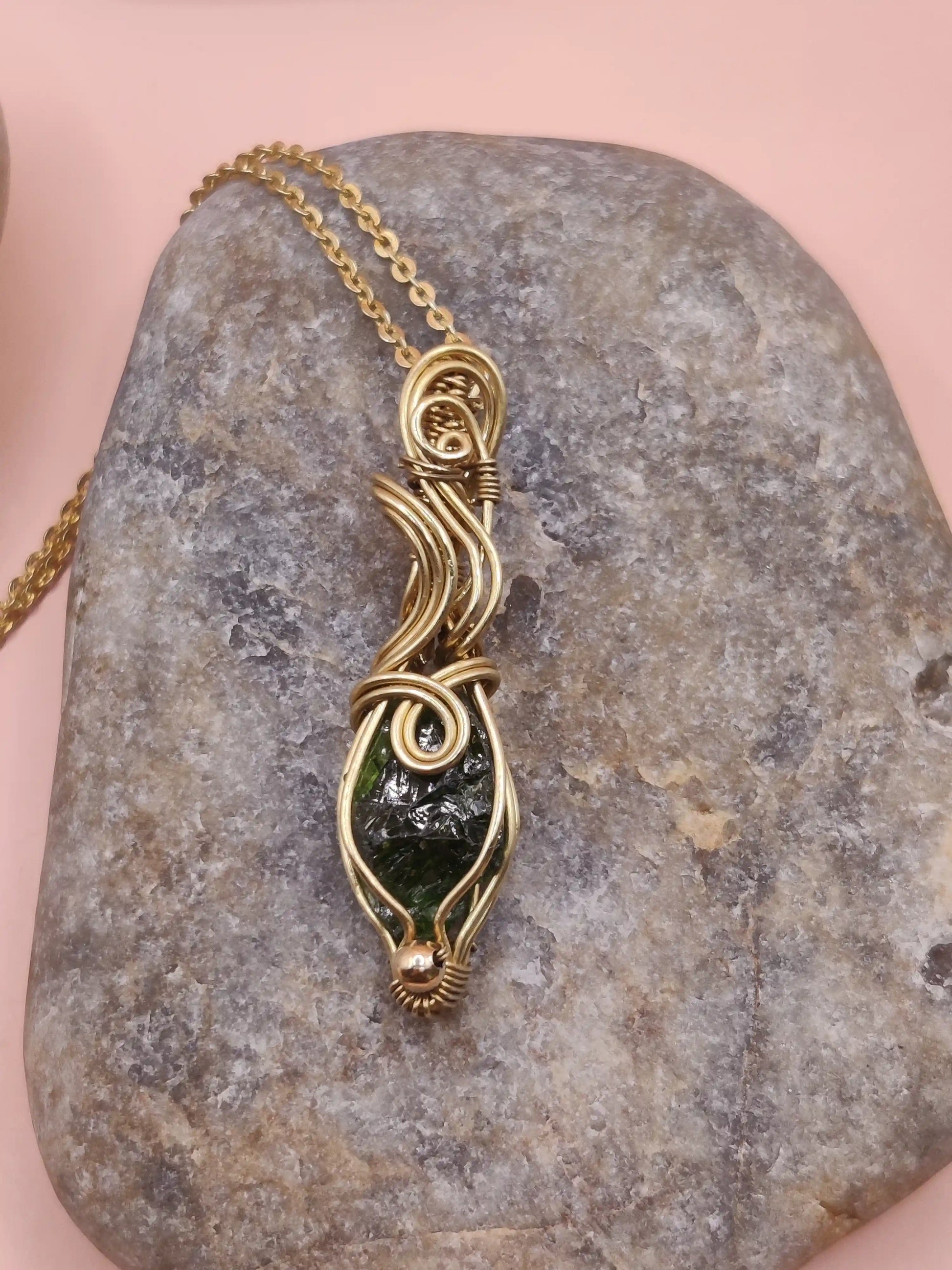 • Handcrafted with a natural, unpolished Chrome Diopside crystal