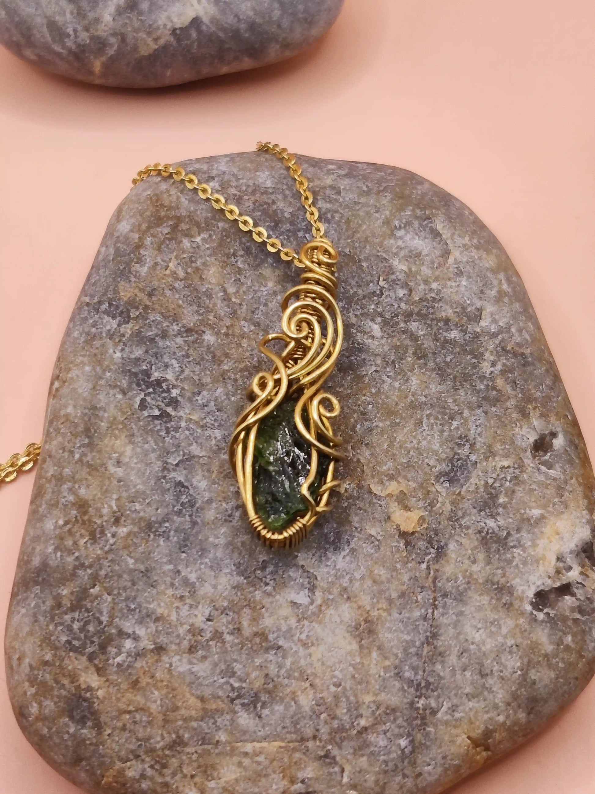 The use of brass adds a golden warmth to the piece and further enhances the grounding qualities of the crystal. Long associated with healing and strength, brass contributes to the energetic synergy of the necklace.