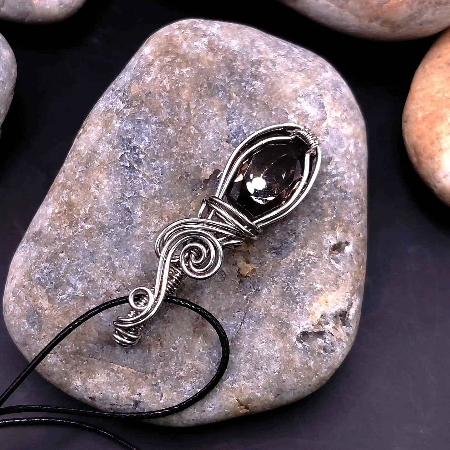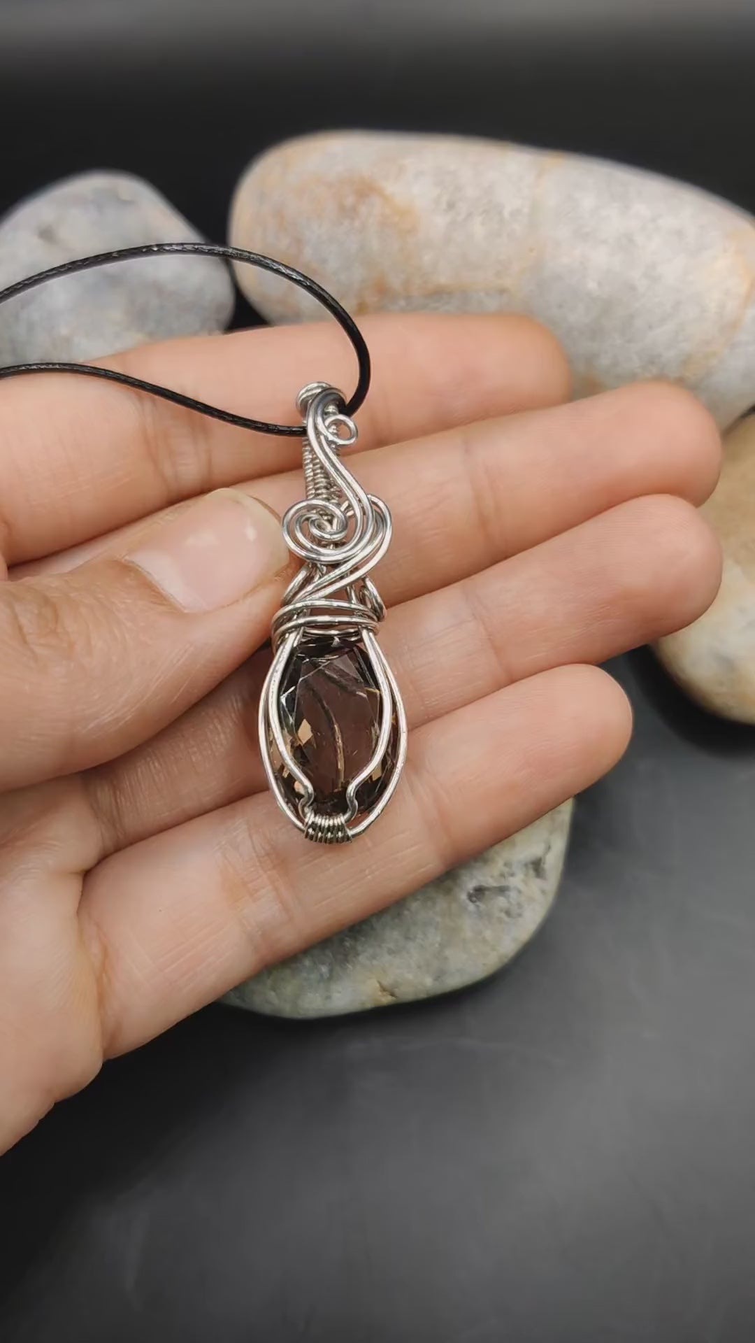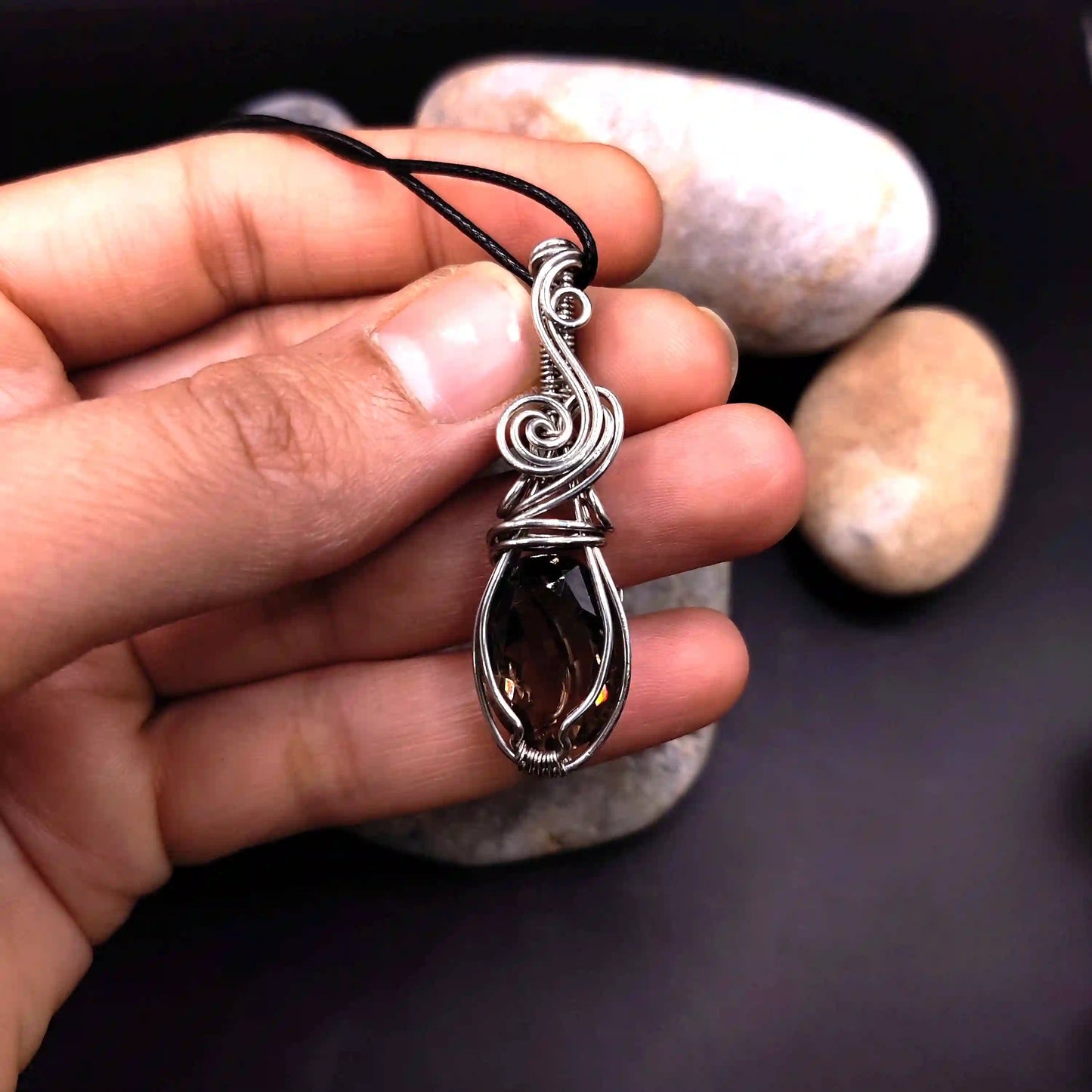 This beautiful necklace features a smoky quartz crystal wrapped in delicate sterling silver wires. Smoky quartz is known for its grounding energy, helping you feel calm and centered. It's a perfect piece for everyday wear, adding a touch of elegance and promoting a sense of well-being.