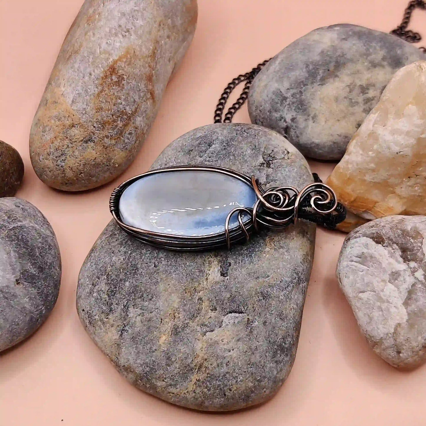 • Handmade with a natural Owyhee Blue Opal stone and copper wire