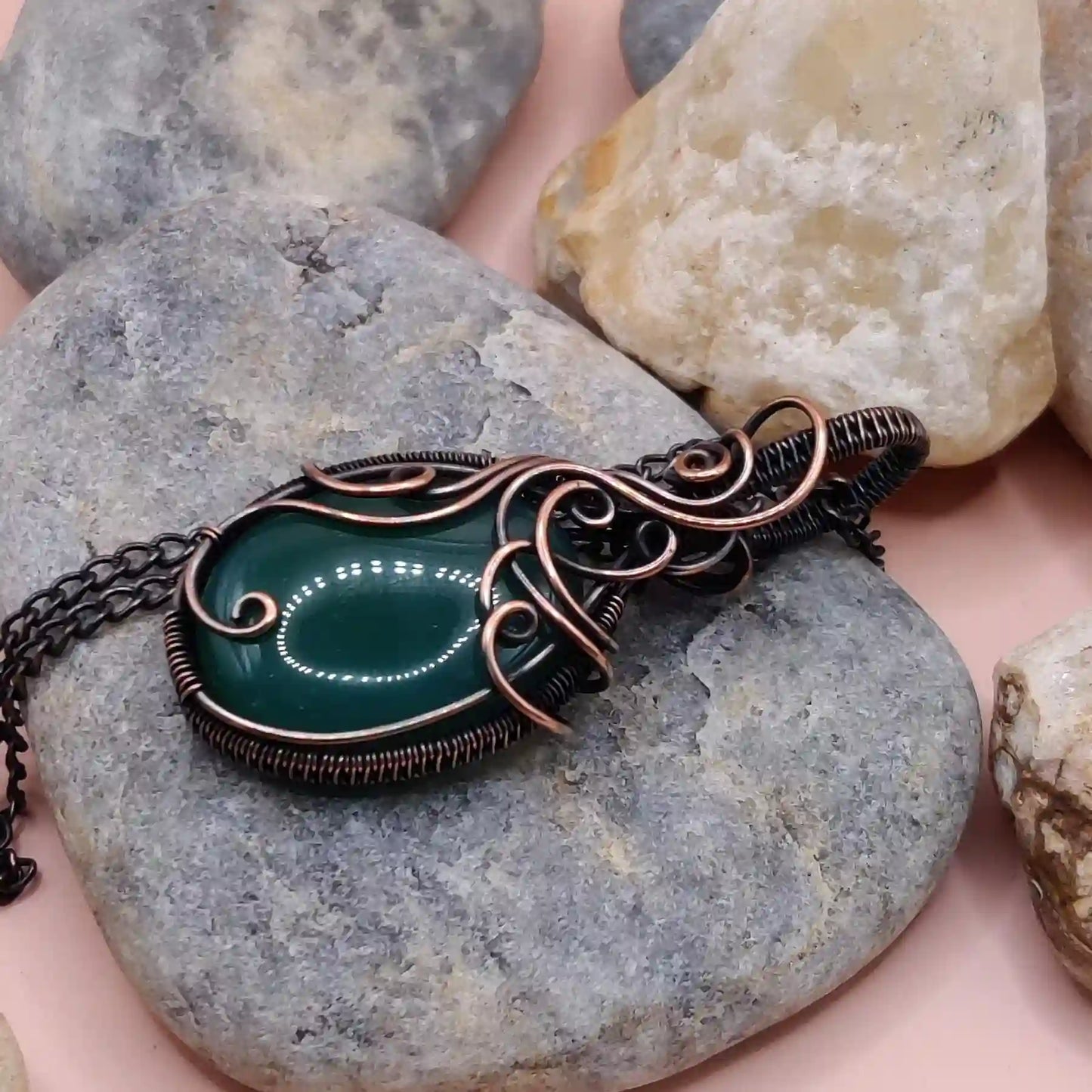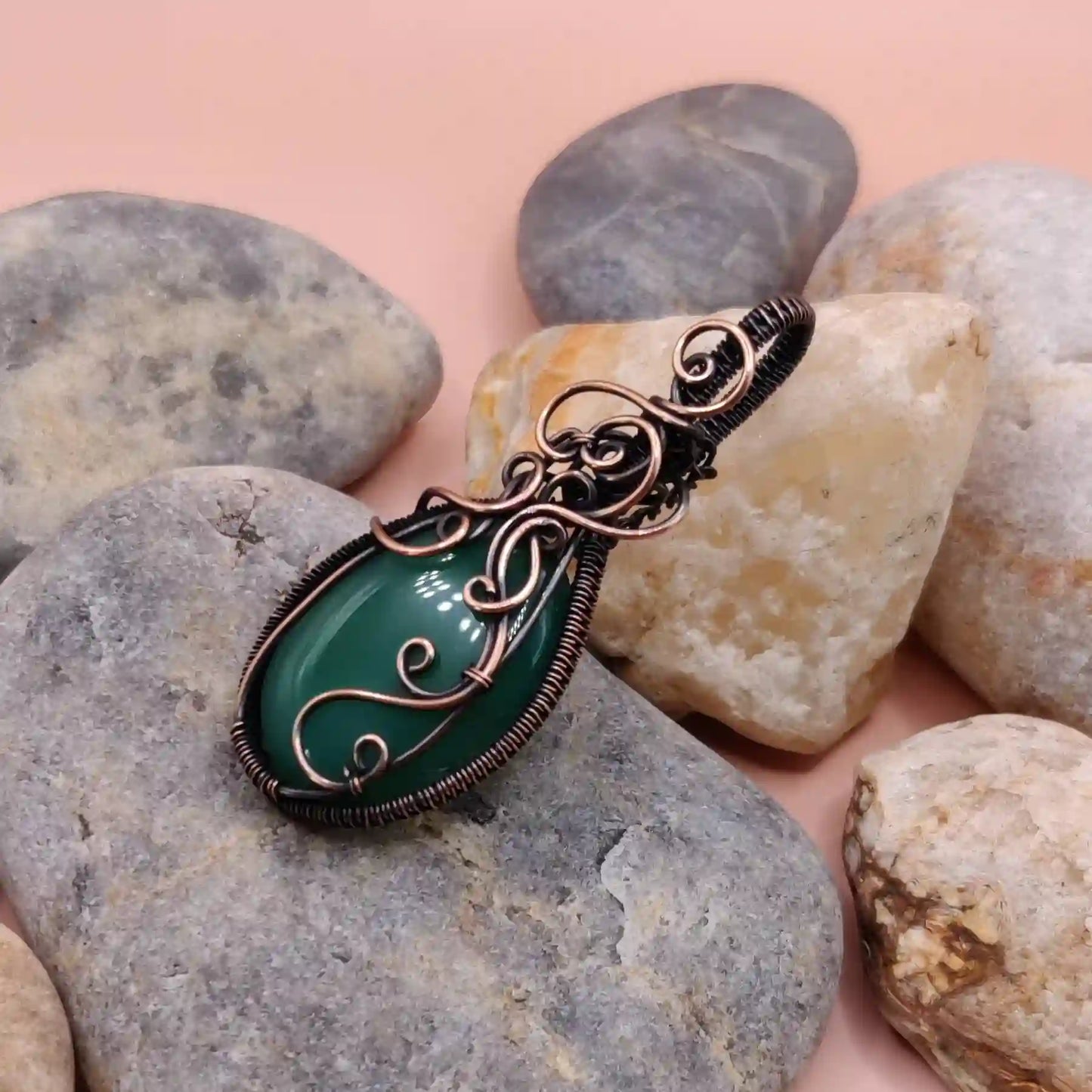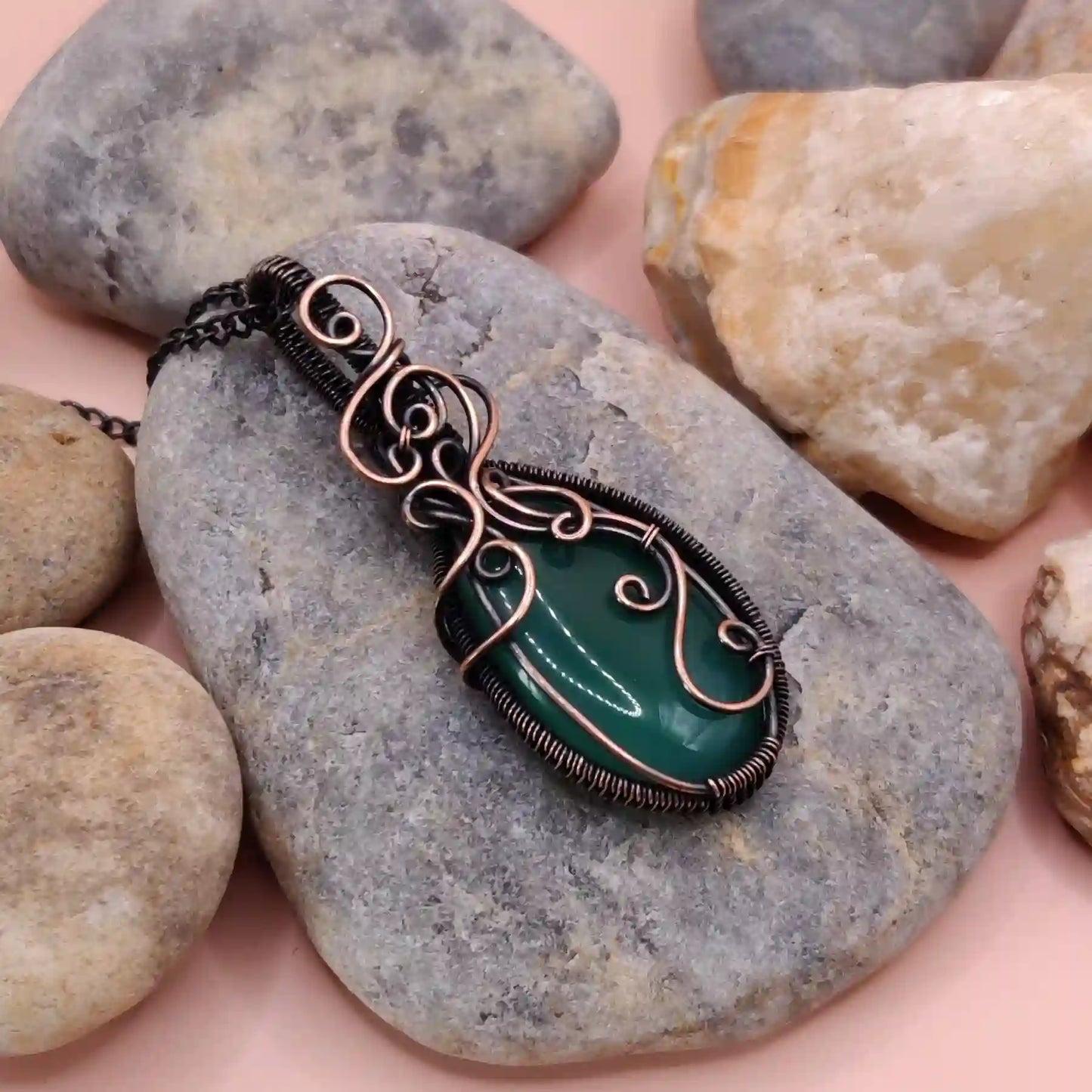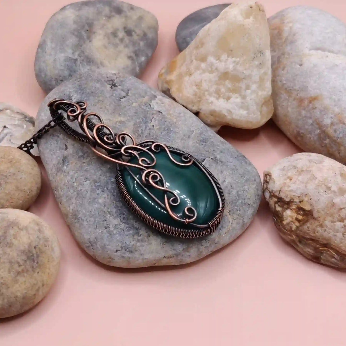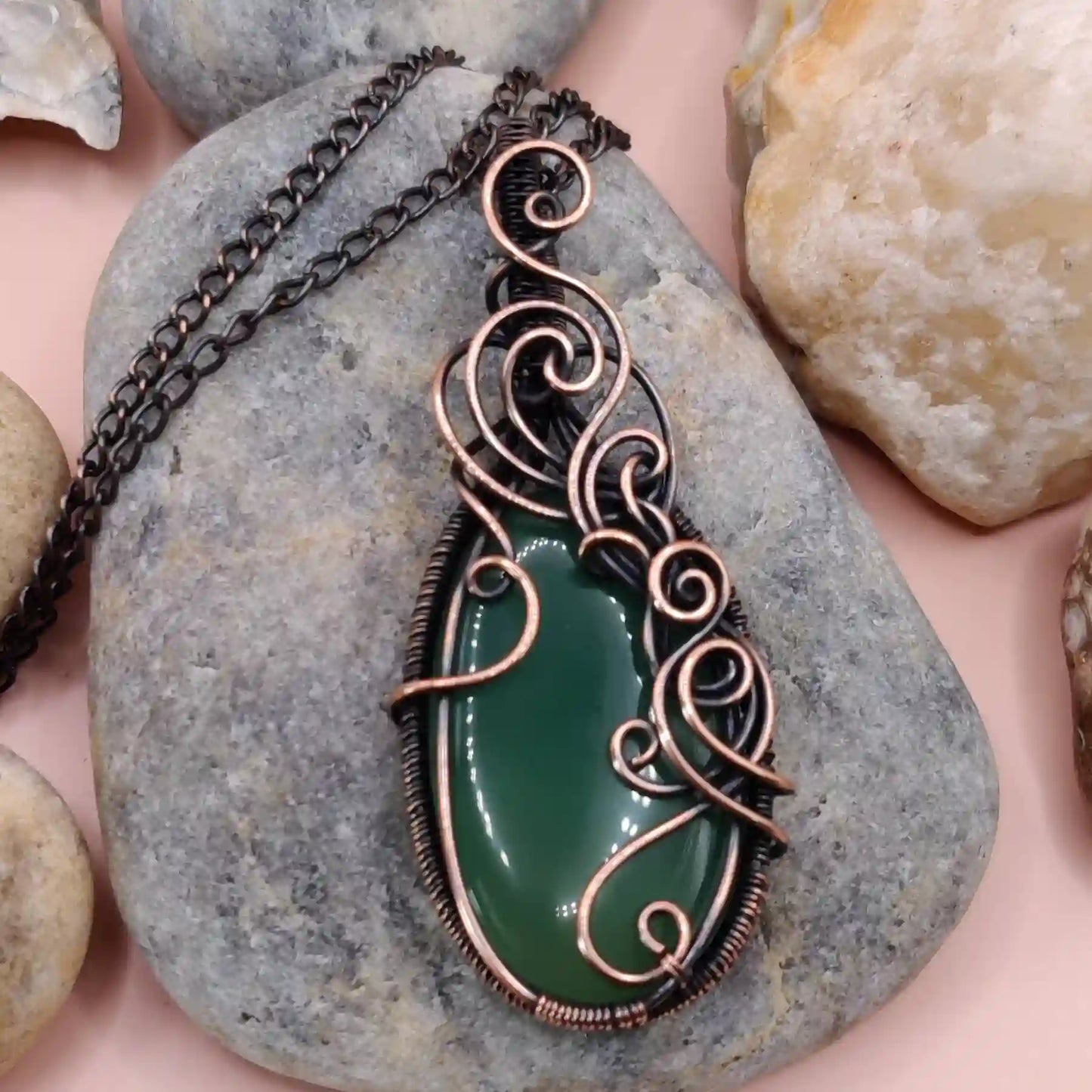 • Handmade with a natural green onyx or green chalcedony pendant and pure copper chain