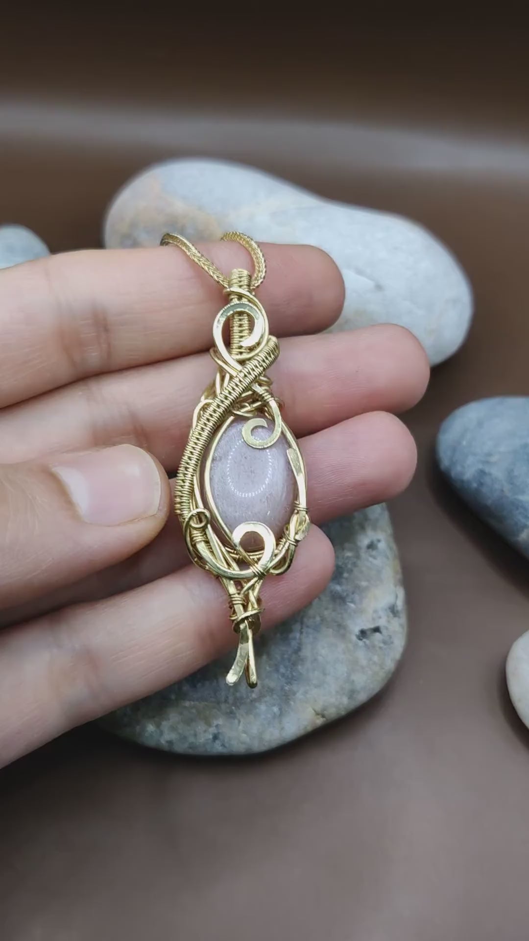 Embrace the harmonious energies of peach moonstone and brass with this exquisite necklace, and let it guide you towards a more balanced, peaceful, and insightful life.