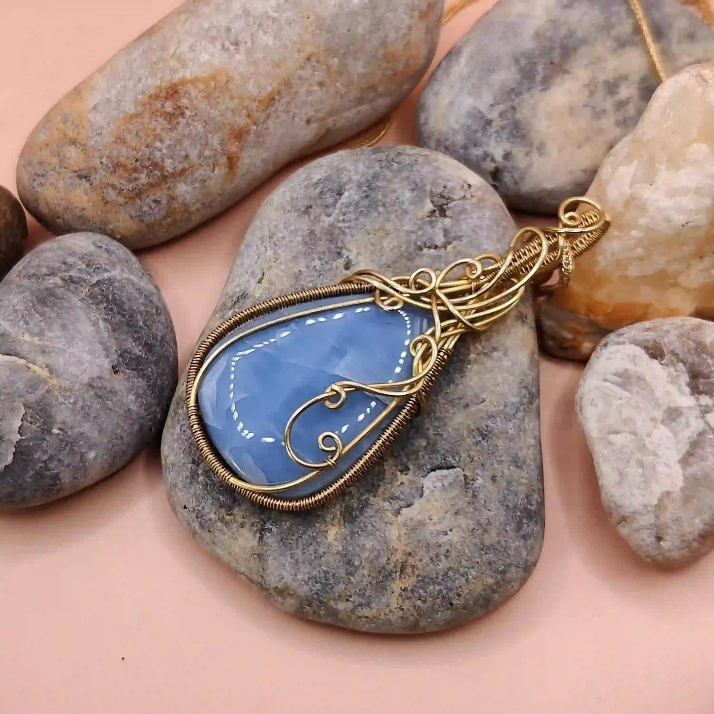 • Handmade with a natural Owyhee Blue Opal stone and brass wire