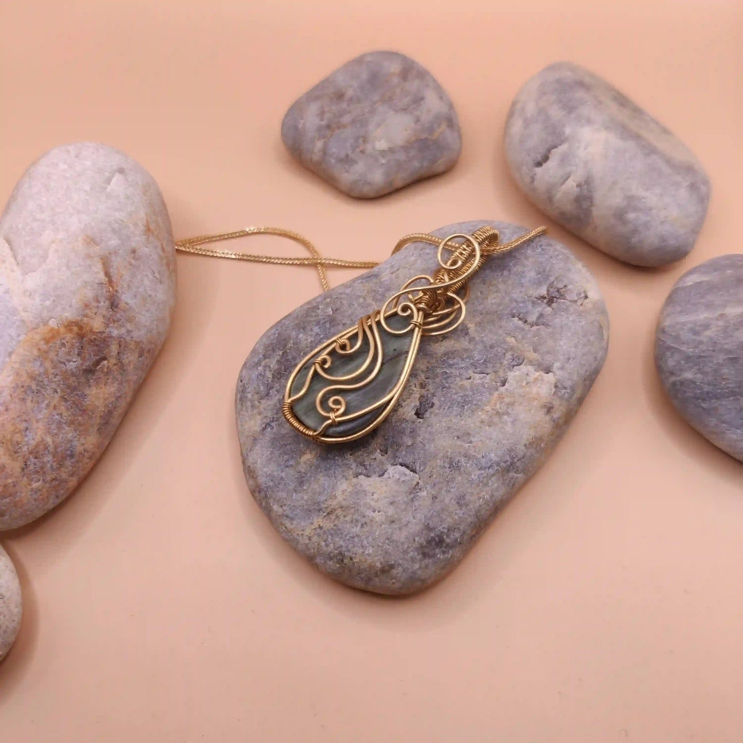 Find Harmony Within: Double-Sided Jade Necklace This captivating necklace features two stunning jade gemstones, each side revealing its unique beauty. Wrapped in delicate brass wire, it offers: Balance & harmony Inner peace & well-being Wisdom & discernment Embrace duality and find your center.