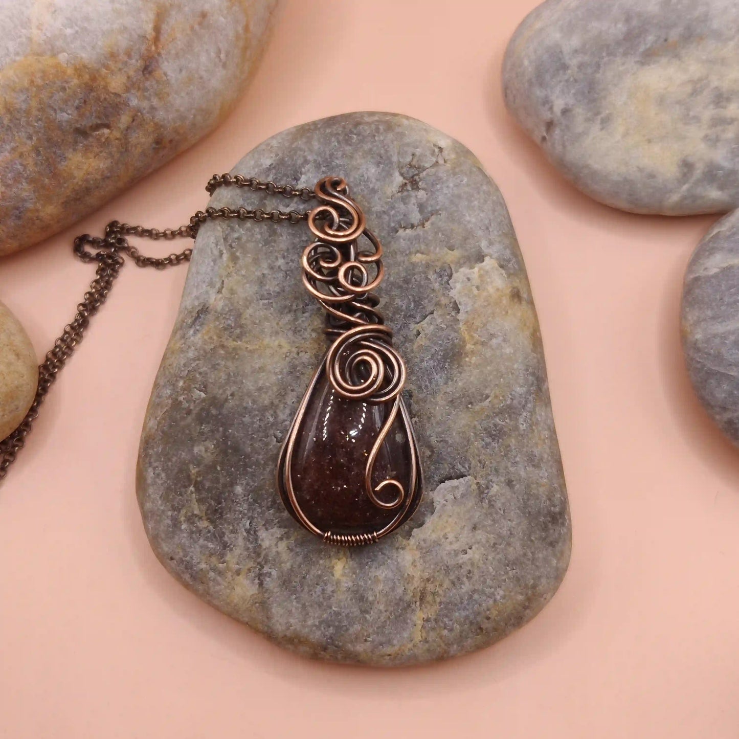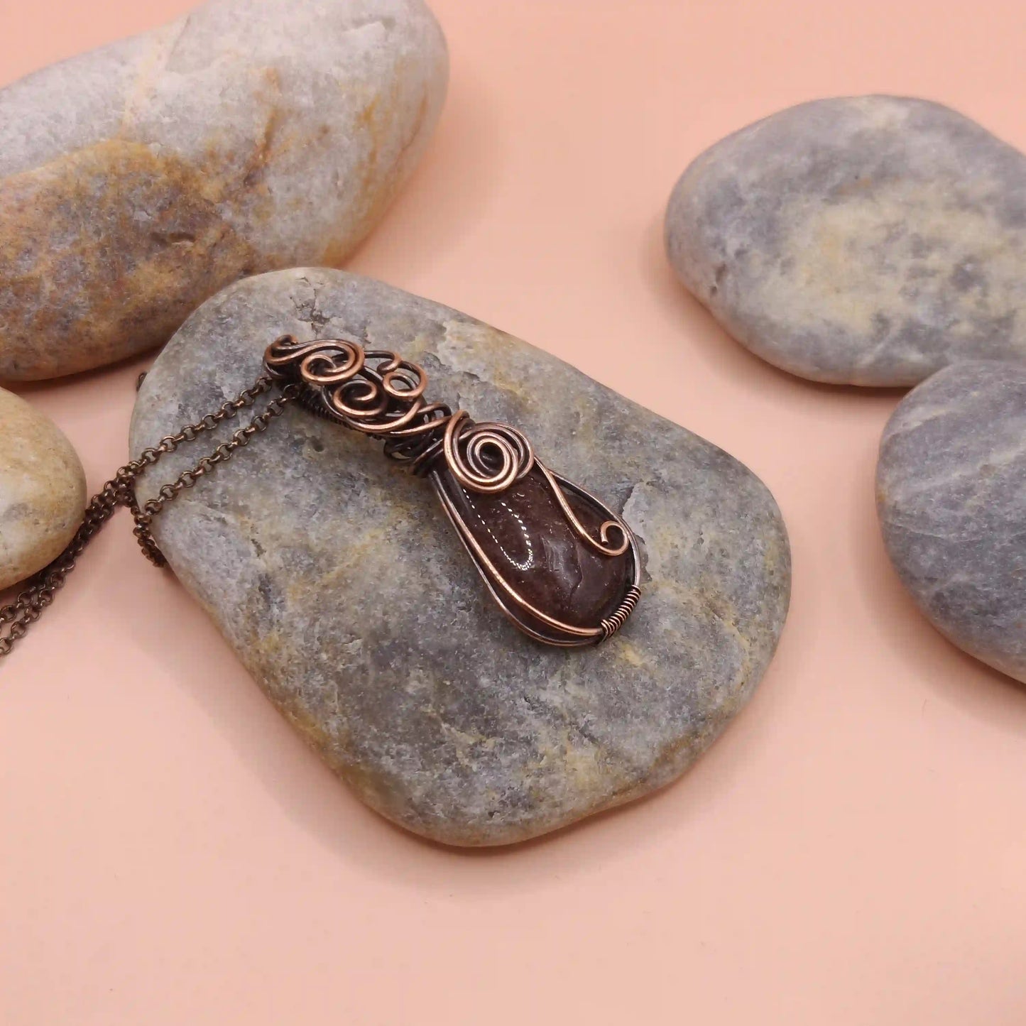• Handmade with natural strawberry quartz and copper wire wrapping