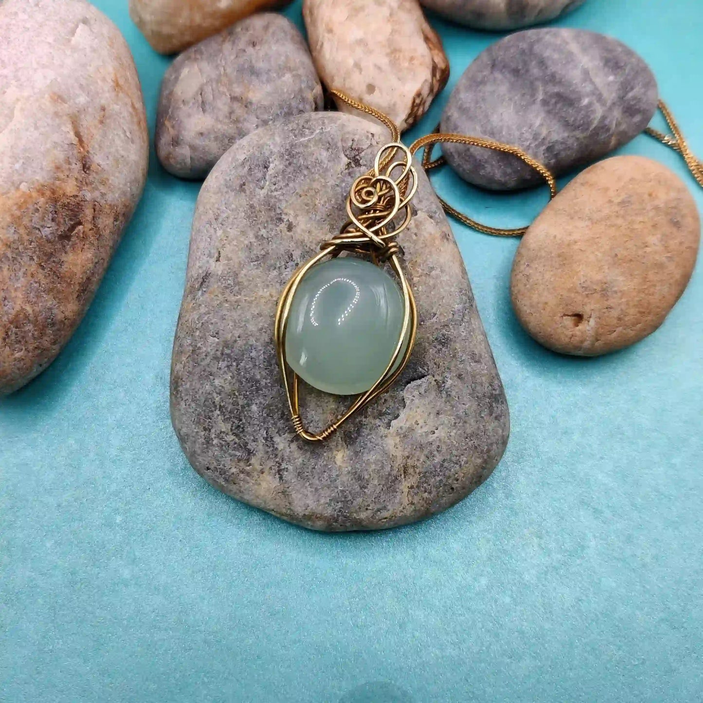 • Handmade with a natural chalcedony pendant and pure brass chain