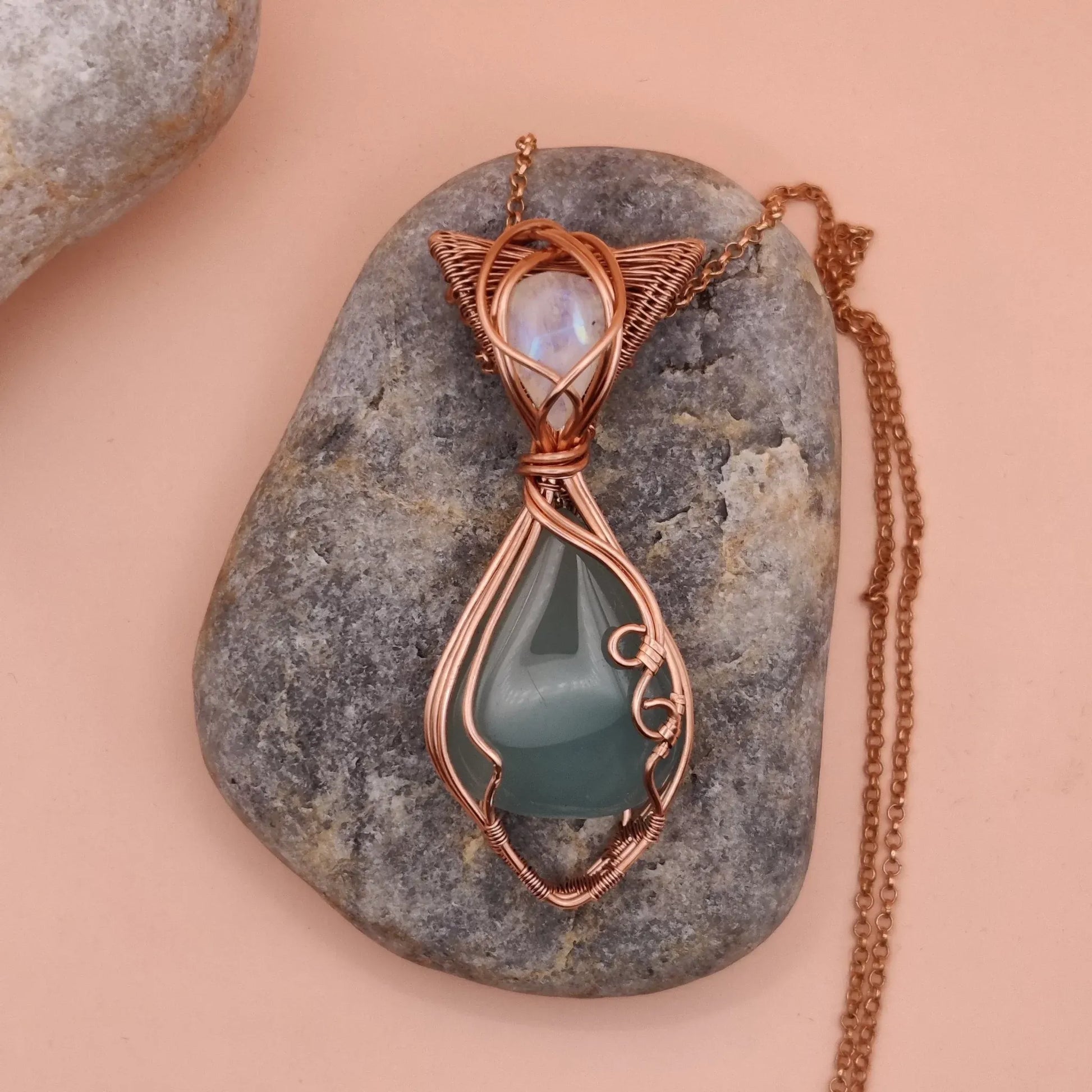 • Handmade with natural chalcedony and rainbow moonstone pendants and a pure copper chain