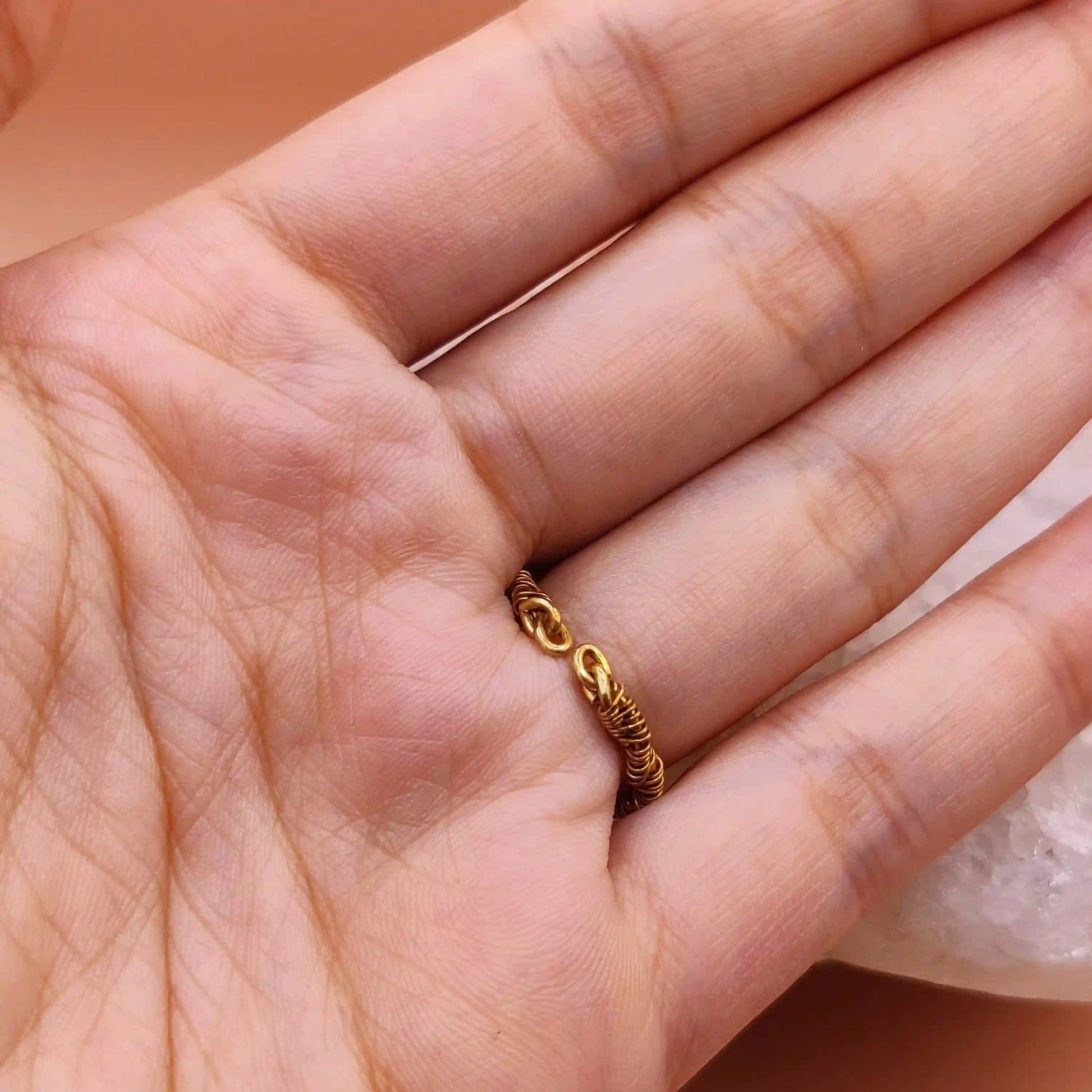 This adjustable brass ring is meticulously crafted for both aesthetic appeal and potential therapeutic benefits. Its unique design captures the essence of antiquity while offering a personalized fit with its adjustable feature. In spiritual circles, brass is believed to hold healing properties akin to its copper counterpart. According to metaphysical beliefs, brass is thought to facilitate energy flow within the body and foster spiritual healing. Similar to copper's role in balancing chakras, brass is believed to activate and align these energy centers, promoting harmony and equilibrium.Available in various sizes, please consult our size guide before placing an order, as returns are not accepted for any of our products.