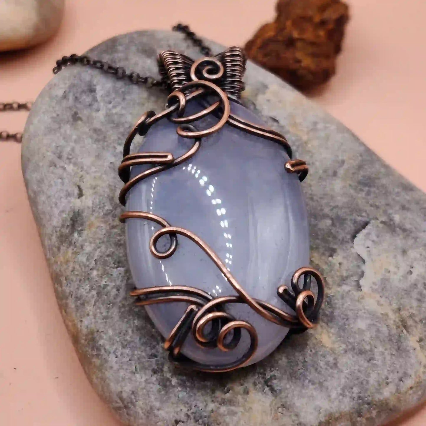• Handmade with a natural chalcedony pendant and pure copper chain