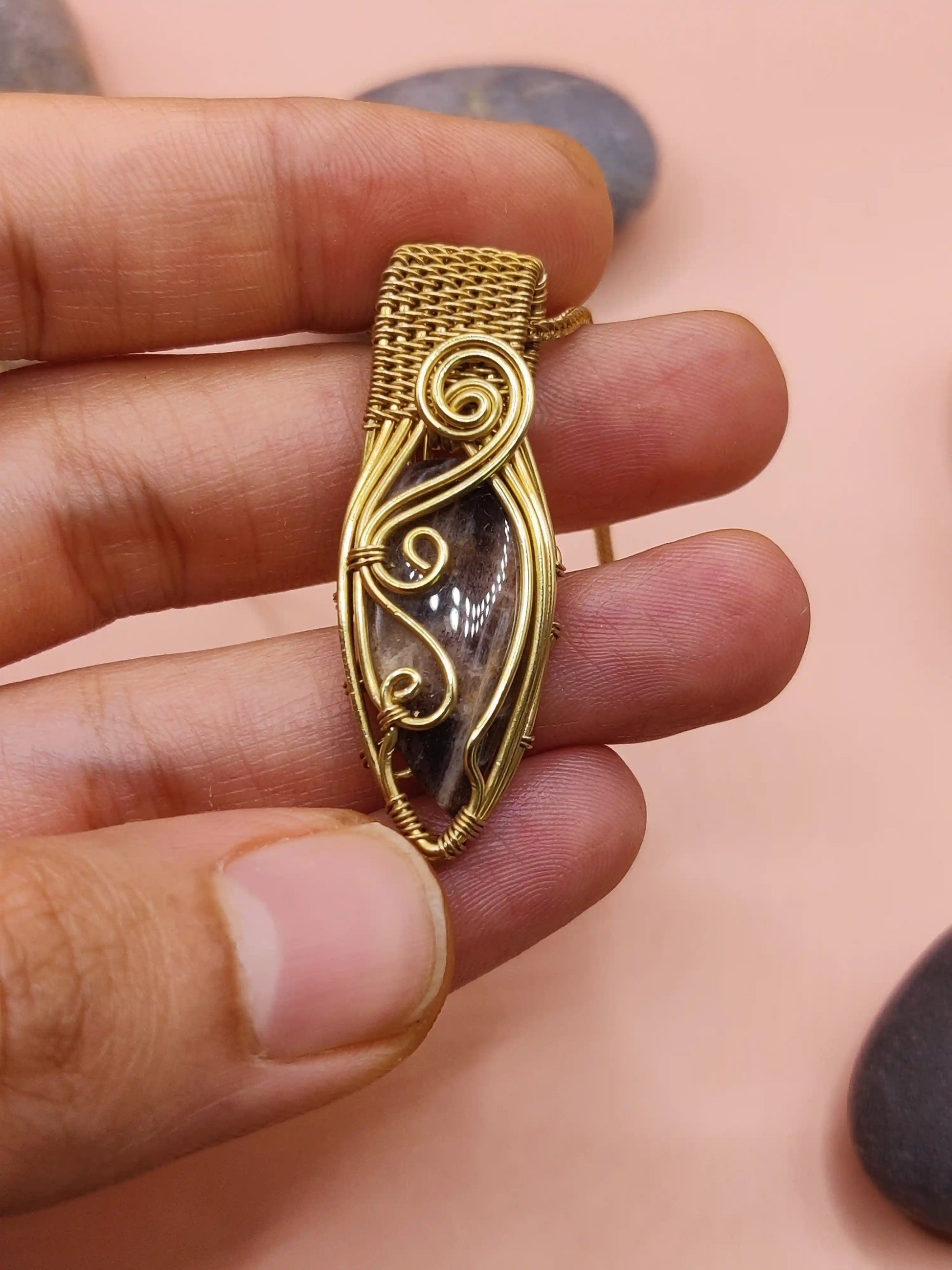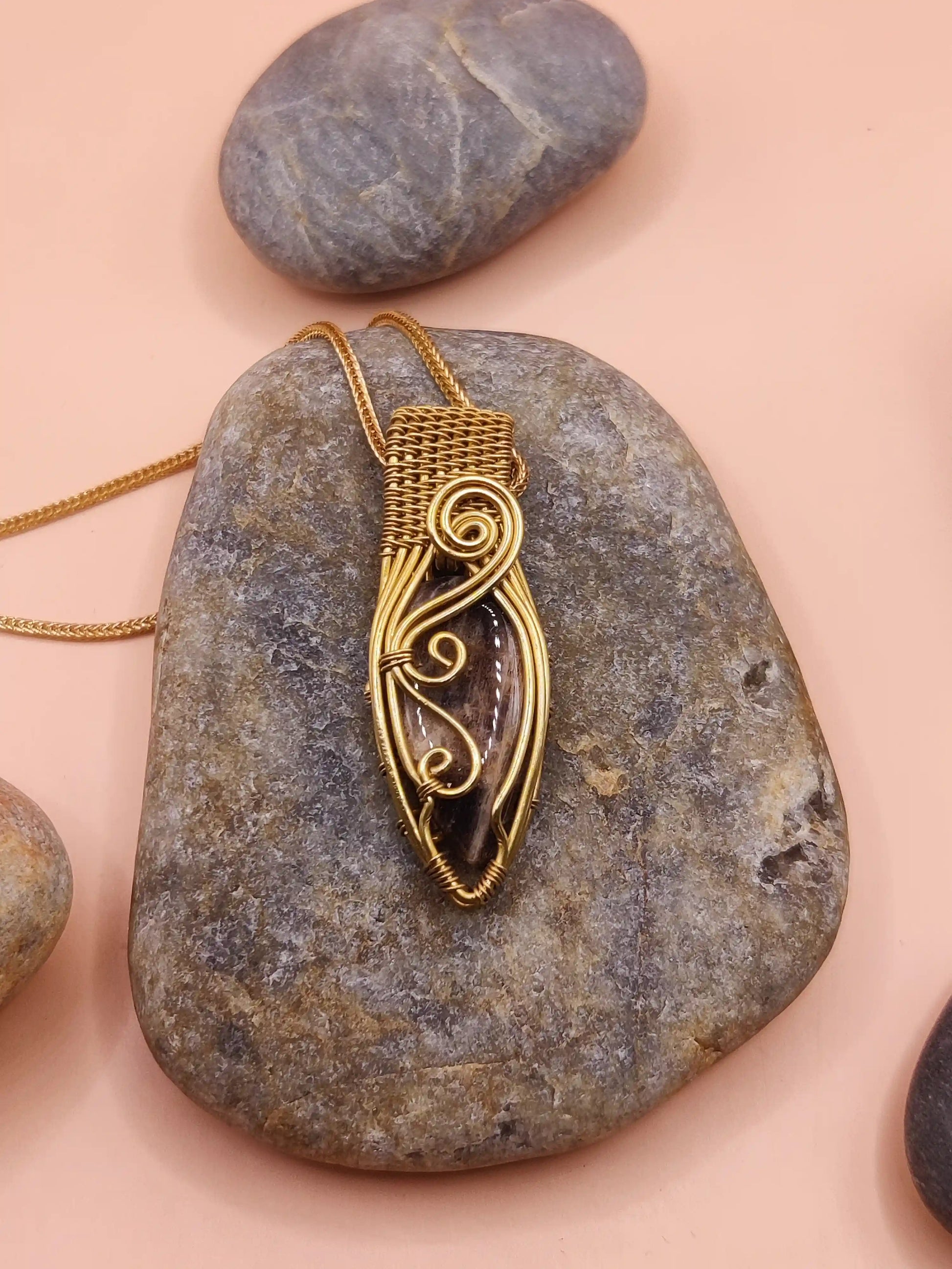 Brass complements Black Peach Moonstone with its golden, earthy tone—bringing in structure, protection, and solar clarity. Together, the metal and stone form a balanced energetic pairing that grounds and supports emotional evolution.