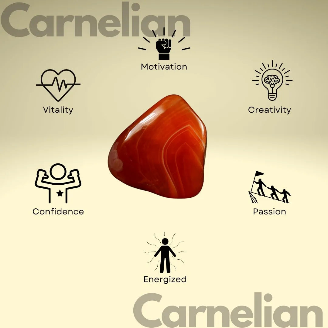 Carnelian agate known for its vibrant energy and joyful properties, is celebrated for its ability to inspire and uplift. These radiant crystals are believed to: