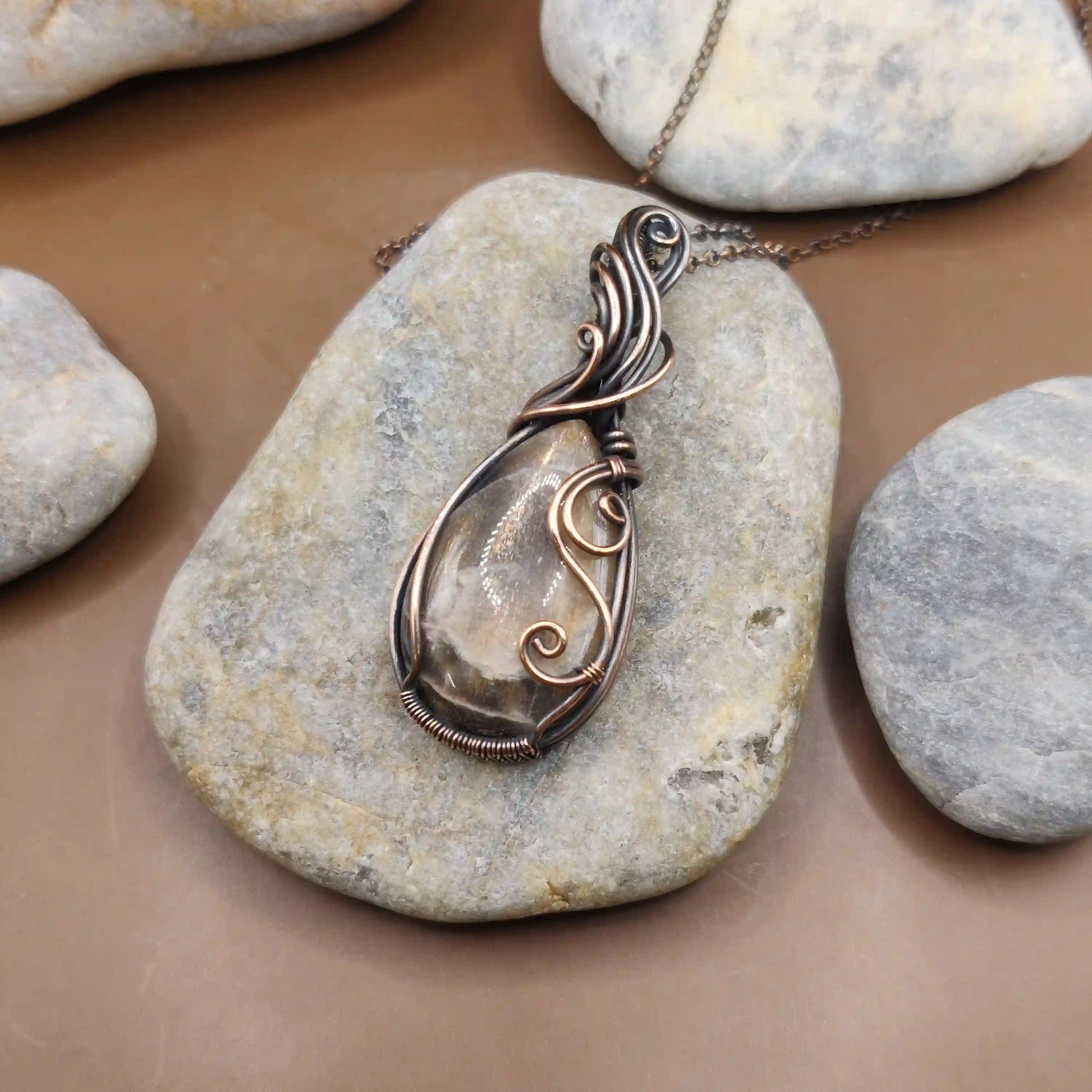 • Handmade with a natural black peach moonstone pendant and copper wire