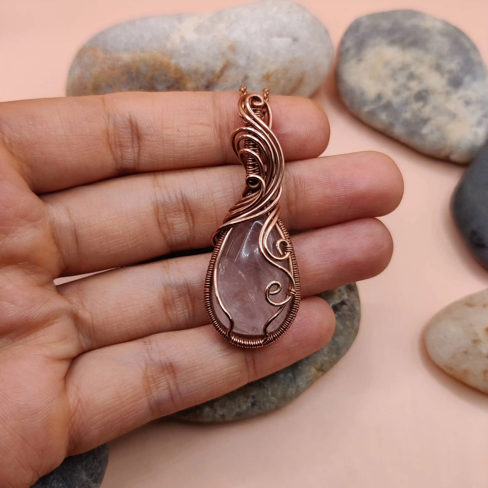 Embrace the harmonious energies of rose quartz and copper with this exquisite necklace, and let it guide you towards a more loving, peaceful, and balanced life.